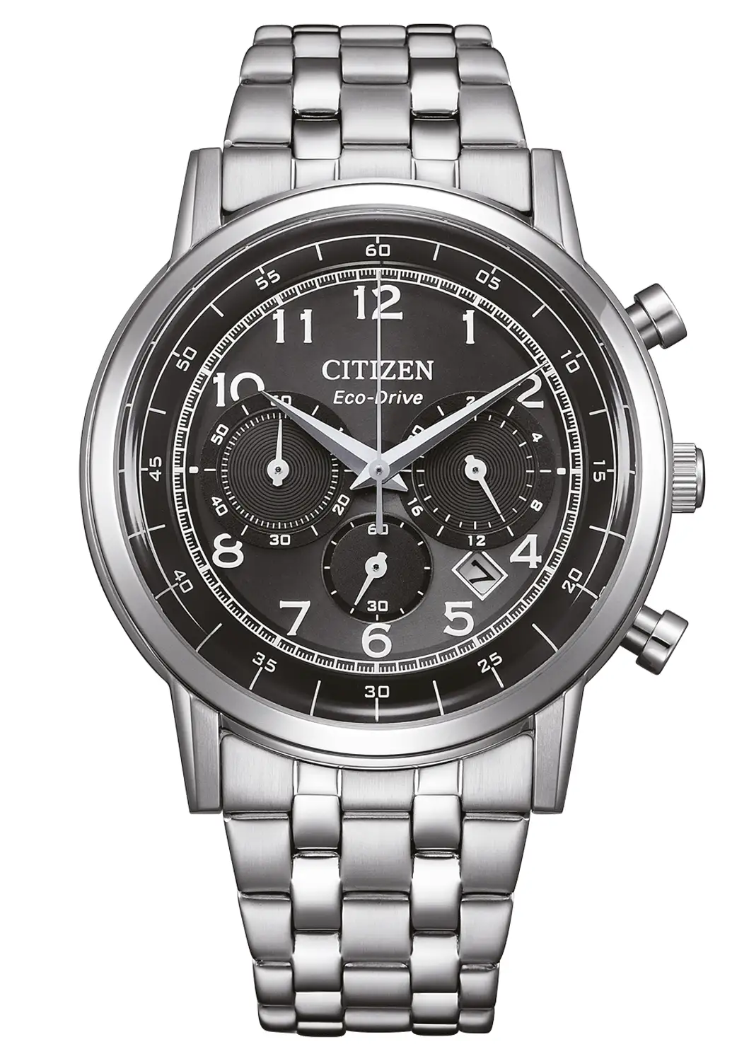 Jeho mechanismus Eco-Drive využívá světelnou energii, takže není třeba vyměňovat baterie, což zajišťuje spolehlivost a komfort používání. Chronograf umožňuje přesné měření času, zatímco jemný 24 hodinový číselník na 3. hodině poskytuje další funkce, ideální pro ty, kteří cestují a cení si přesné načasování dne. Datumovka diskrétně zobrazuje aktuální datum, což hodinkám dodává ještě více praktičnosti.