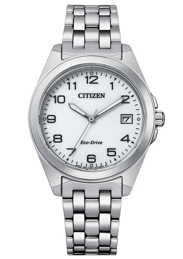 Dámské hodinky Classic Citizen Classic Elegance EO1210-83A vyrobené z nerezové oceli. Pouzdro o průměru 33,50 mm má hranaté hrany a leštěné a matné prvky. Pokračování vzoru je vidět na náramku s kovanými prvky, díky čemuž je neuvěřitelně odolný. Za pozornost stojí především elegantní bílý ciferník s poutavým zdobením v podobě svislých pruhů. Velké arabské číslice a ručičky jsou snadno čitelné a chráněné safírovým sklem odolným proti poškrábání. Uvnitř je spolehlivý a ekologický (bez baterie) mechanismus napájený světlem, který energii potřebnou k práci ukládá do baterie.