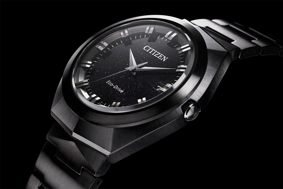 Jeho designové pouzdro a náramek jsou vyrobeny z vysoce kvalitní nerezové oceli a potaženy odolným černým povlakem. Pouzdro s rozměry 42,50 x 11,10 mm a hranatými tvary přímo odkazuje na quartzový model Citizen z roku 1973. Na počátku 70. let 20. století svět zažíval energetickou krizi a inženýři Citizen viděli sluneční světlo jako inovativní, neznečišťující zdroj čisté energie. To byla geneze Eco-Drive, založené na odhodlání společnosti Citizen poskytnout světu ekologické hodinky, které nevyžadují pravidelnou výměnu baterie. První analogové hodinky na světě napájené světlem byly uvedeny na trh v roce 1976. Od představení tohoto převratného modelu japonský výrobce pokračuje v průkopnictví technologií hodinek poháněných světlem a vyvíjí je až do bodu, kdy lze i malé množství světla přeměnit na elektřinu pro napájení hodinek Eco-Drive.