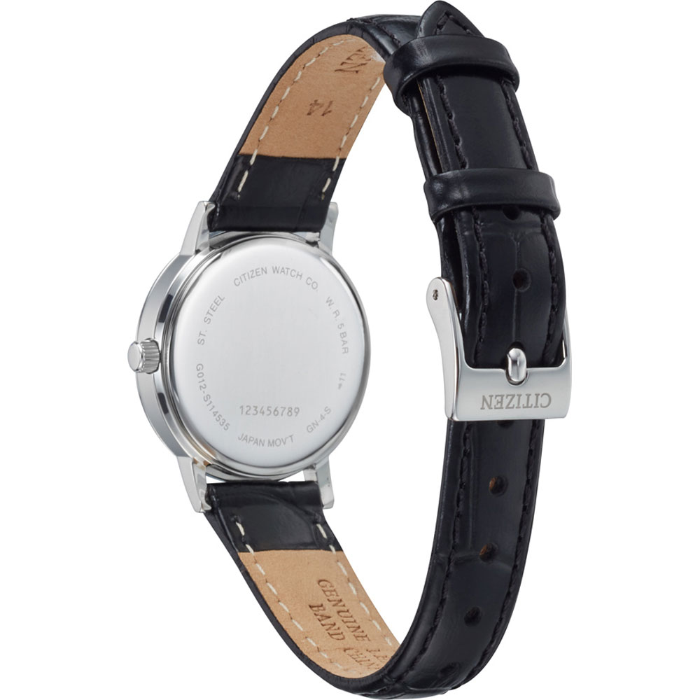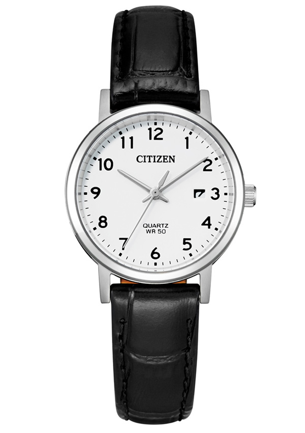 Klasické hodinky pro ženu Citizen EU6090-03A v elegantní edici. Čitelný bílý číselník s arabskými indexy. Jednoduché tipy nabroušené na konci. 28mm pouzdro z nerezové oceli s černým koženým řemínkem. Třída těsnění WR50, 5 bar poskytuje ochranu proti postříkání. Přesné měření času zajišťuje bateriový Machineek quartz.