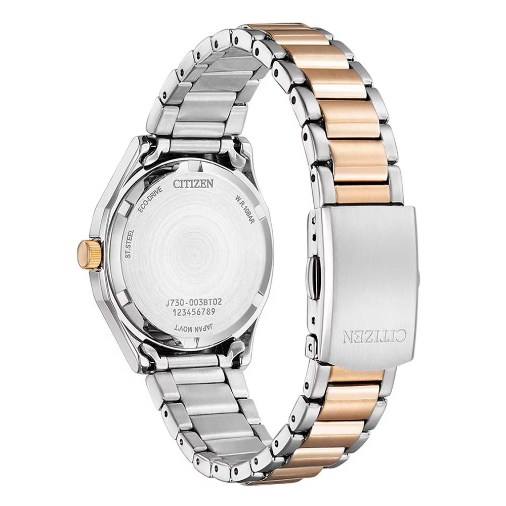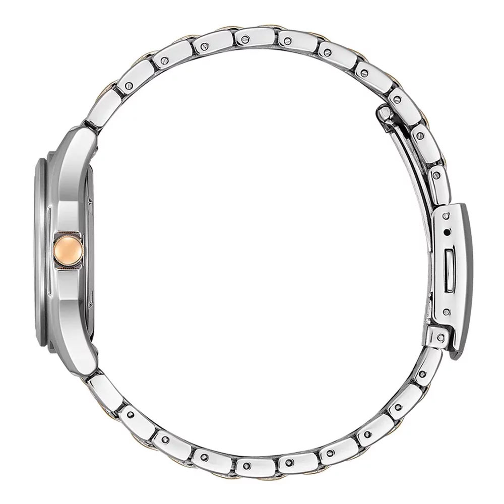 Citizen Classic Elegant FE2116-85A jsou hodinky pro ženy, které oceňují módní design a praktické využití. Čitelný bílý číselník s elegantním vzorem v podobě vodorovných čar. V kombinaci s naostřenými, pozlacenými indexy a ručičkami přidává na třídě. Ocelové pouzdro o průměru 31 mm využívá technologii Eco-Drive. Solární mechanismus, napájený jakýmkoli světelným zdrojem. Pouzdro je spárováno s lehkým a elegantním náramkem z nerezové oceli s prvky pozlacenými PVD růžovým zlatem. Klasické hodinky Citizen se skvěle hodí k večernímu outfitu a svými rozměry z nich dělají ideálního společníka na obchodní jednání i každý den.