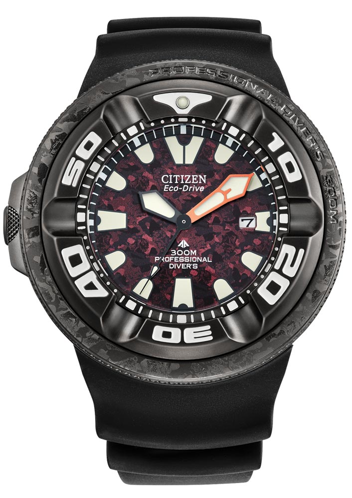 Odolné provedení si od fanoušků vysloužilo přezdívku Ecozilla, kombinující technologii Eco-Drive s Godzillou. Vodotěsnost do 300 metrů zaručuje profesionální diverské schopnosti a čitelný červený ciferník zdobený unikátním maskovacím vzorem, odvážné, lesklé ručičky a fixy zajišťují připravenost k akci. Hodinky jsou vybaveny odolným a ekologickým černým polyuretanovým řemínkem vyrobeným z materiálů z biomasy. Tyto kultovní sběratelské hodinky jsou ekologicky poháněné díky technologii Eco-Drive, která nikdy nevyžaduje výměnu baterie. Kalibr B873 dodává těmto hodinkám výjimečnou kvalitu a spolehlivost. Hodinky jsou celosvětově limitovány na 3000 kusů.