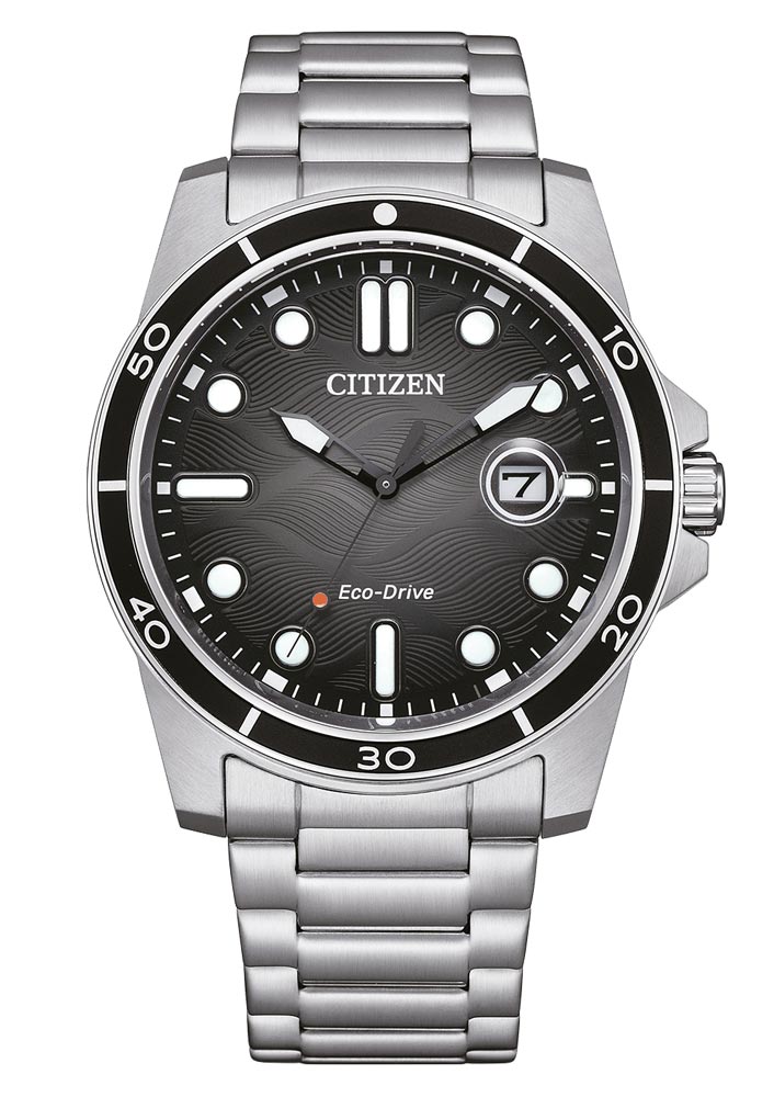 Citizen Marine má třídu těsnosti 100 m. Odolná konstrukce a pevné materiály použité k výrobě tohoto modelu dělají hodinky připravené čelit i těm nejtěžším výzvám ve vodním prostředí. Jednou z nejpůsobivějších vlastností těchto hodinek je jejich perfektně čitelný ciferník, v intenzivním odstínu černé s jemným motivem vln. Čiré ručky a indexy potažené luminiscenční látkou zaručují vynikající viditelnost jak pod vodou, tak za zhoršených světelných podmínek. Toto speciální řešení umožňuje uživateli snadno odečítat čas i v těch nejnáročnějších situacích.