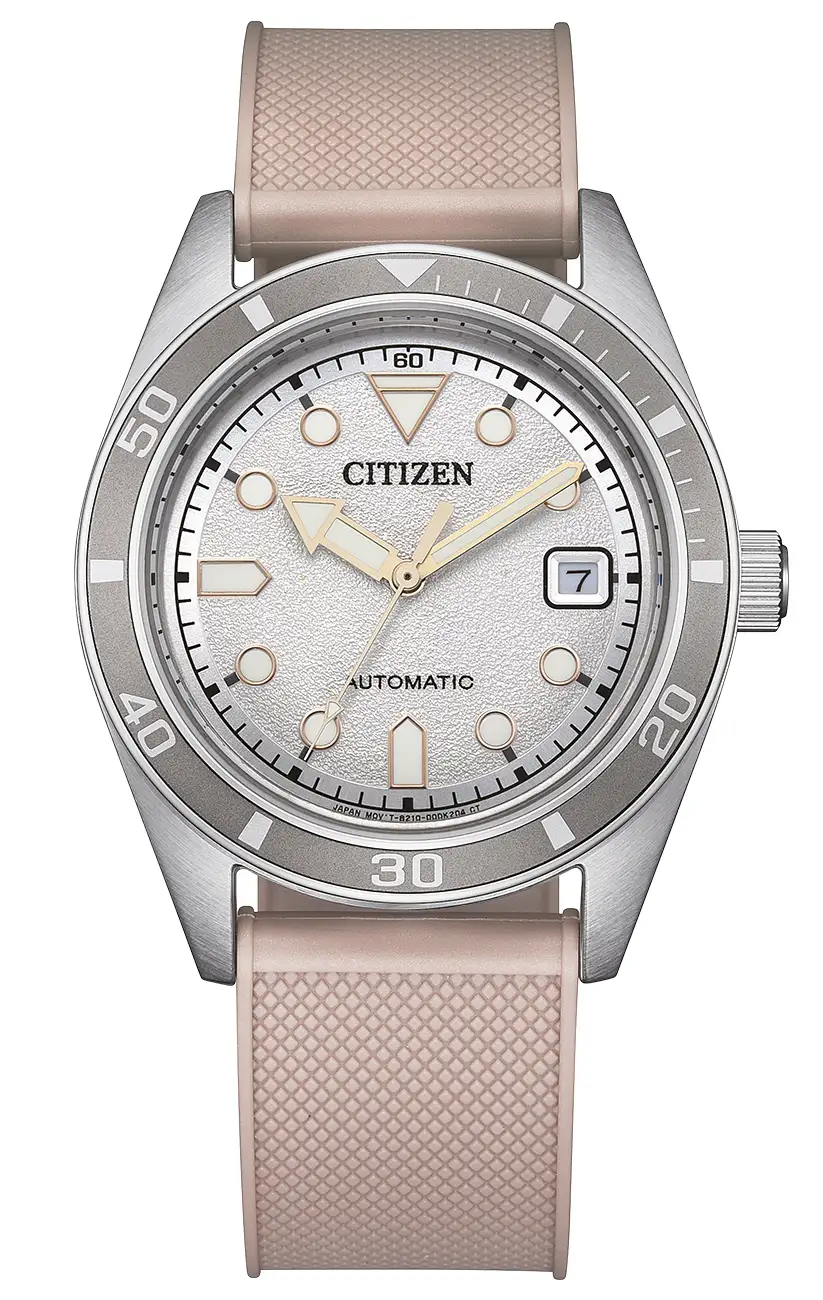 Hlavní předností tohoto modelu z linie Citizen Marine Automatic je číselník s unikátní zrnitou strukturou ve stříbřitě bílé barvě, který výborně rozptyluje světlo a zajišťuje vynikající čitelnost. Číselník je osazen velmi velkými ručkami a geometrickými indexy, které byly vyplněny výkonnou luminiscenční hmotou. Díky tomu svítí velmi výrazně pod vodou i v naprosté tmě. O pohon se stará osvědčený japonský mechanismus Citizen Automatic kalibr 8210, který pracuje díky energii generované pohyby zápěstí majitele.