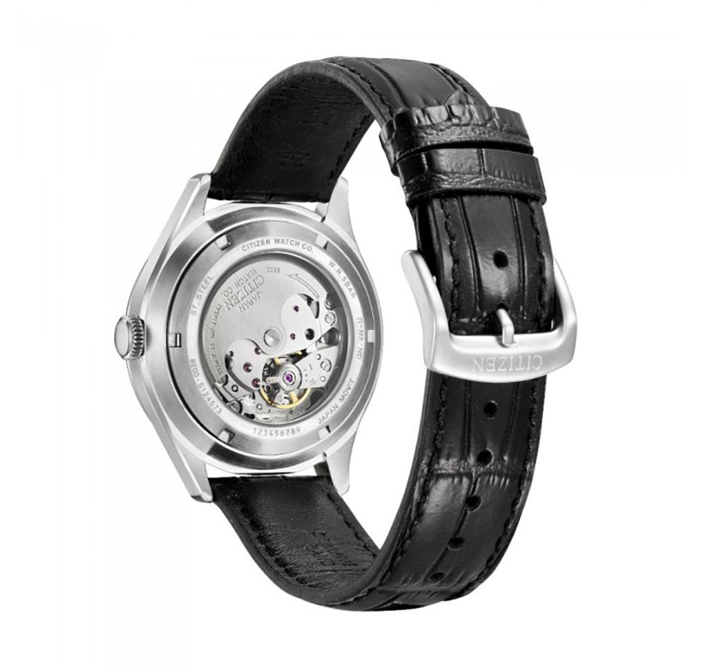 Šroubovací pouzdro nejen utěsňuje konstrukci až do 50 m, ale obsahuje také skleněné pouzdro, které ukazuje práci automatického Machineku Citizen 8200 . Má 40hodinovou rezervu chodu, 21 drahokamů a tepovou frekvenci 21 600 vph.