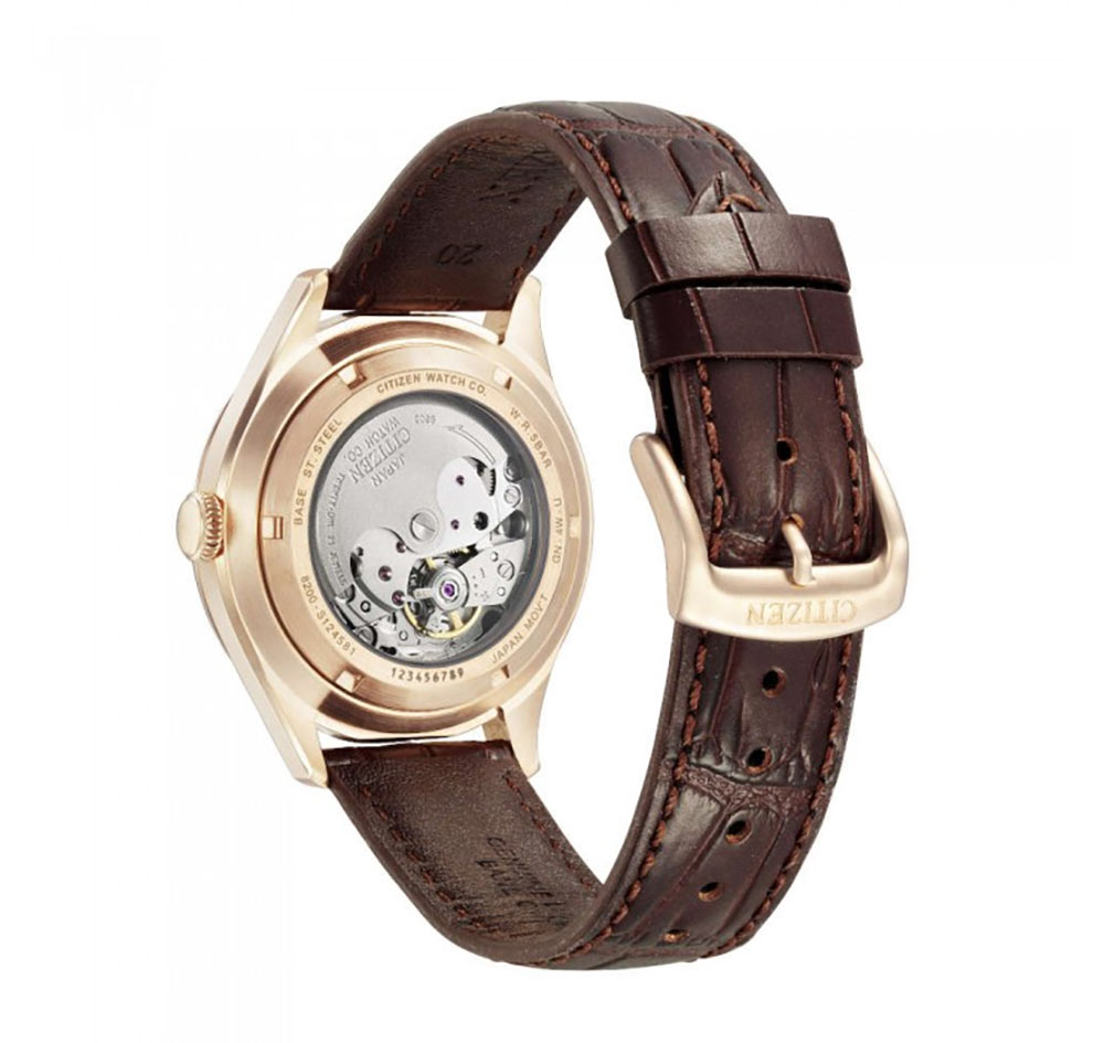 Šroubovací pouzdro nejen utěsňuje konstrukci až do 50 m, ale obsahuje také skleněné pouzdro, které ukazuje práci automatického Machineku Citizen 8200. Má 40hodinovou rezervu chodu, 21 drahokamů a tepovou frekvenci 21 600 vph.