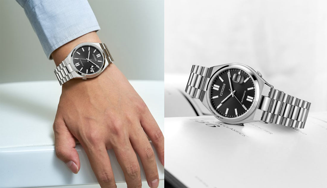 Japonské hodinky Citizen Tsuyosa Mechanical NJ0150-81E jsou klasické pánské hodinky s kompaktním pouzdrem o velikosti 40 mm. Pouzdro má perfektně padnoucí náramek z oceli, který pohodlně sedí na každém mužském zápěstí. Náramek je vybaven bezpečným a snadno použitelným motýlkovým zapínáním na dvě tlačítka. Zadní strana hodinek Citizen je ocelový kryt s průhledným okénkem, které umožňuje obdivovat práci japonského mechanismu Miyota Automatic. Tento model nabízí ultramoderní styl a rafinovaný design, který vynikne na zápěstí.