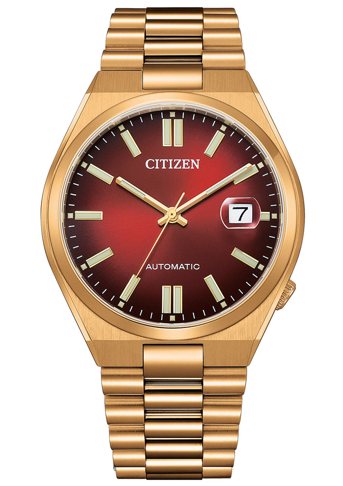 Pod antireflexním safírovým sklem mají tyto pánské hodinky červený ciferník. Na ciferníku je datumovka zvětšená lupou na pozici 3 hodin a kontrastní stříbrné detaily ručiček a indexů, které dodávají klasickou estetiku. Ručičky jsou potaženy svítící luminiscenční hmotou, která usnadňuje čtení času ve tmě. Tyto automatické hodinky Citizen jsou vybaveny japonským mechanismem Kalibr 8210, který nabízí rezervu chodu až 42 hodin. Osvědčený, přesný mechanismus se pyšní složitou konstrukcí a pozlacenými prvky. Pánské hodinky Citizen s náramkem jsou skvělou volbou pro každou příležitost. Hodí se jak k elegantní, tak ke sportovní košili. Pozlacené hodinky Citizen budou dokonalým doplňkem pánského šatníku.