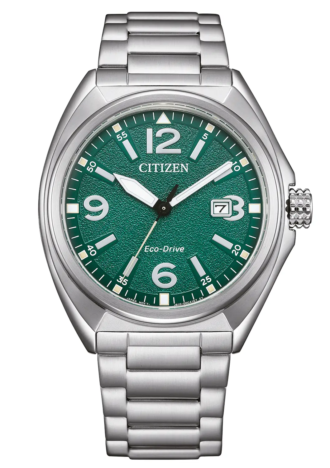 Citizen Military AW1571-09A jsou hodinky určené pro sportovní nadšence a outdoorové výzvy. Je vybaven solárním mechanismem Eco-Drive a není třeba vyměňovat baterii, protože se nabíjí přirozeným světlem, což z něj činí praktické a ekologické řešení. Matný bílý ciferník má nerovnoměrnou texturu, která mu dodává výrazný, syrový vzhled. Díky jasným arabským indexům a oranžovým akcentům jsou hodinky výjimečně čitelné za všech světelných podmínek. 40 mm pouzdro má technický, hranatý tvar, zdůrazňující vojenský charakter hodinek a poskytuje dodatečnou odolnost. Zelený kožený a látkový řemínek dokonale ladí s charakterem hodinek. Vodotěsnost 100 m (10 barů) navíc činí hodinky odolnými proti ponoření a vlhkosti, takže jsou ideální volbou pro aktivní lidi, kteří oceňují funkčnost a spolehlivost.