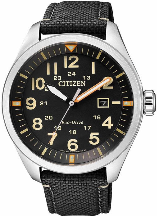 Pánské hodinky ve vojenském, vojenském stylu. Černý ciferník s přehlednými arabskými indexy a velké ručičky usnadňují odečítání času za všech podmínek. Třída těsnosti WR100/100m vám umožňuje volně plavat. Černý kožený řemínek s bílými akcenty. Tento model má navíc mechanismus Eco-Drive napájený sluncem, ciferník funguje jako solární baterie, která přeměňuje světelnou energii na energii, která pohání hodinky a ukládá je do speciální baterie. Životnost takové baterie je cca 7-10 let.
