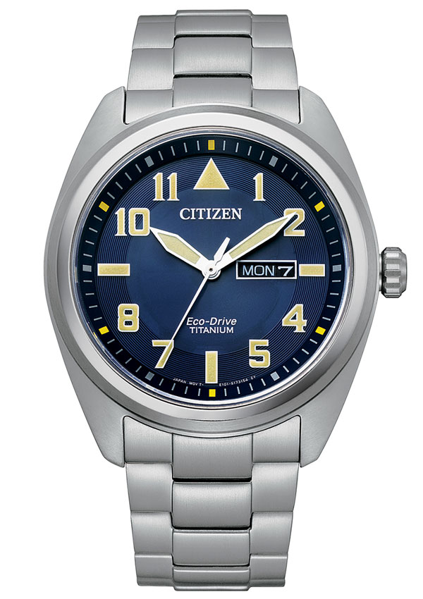 Vojenské hodinky Citizen Military BM8560-88LC v titanovém provedení. Extrémně lehký, příjemný na nošení a hypoalergenní materiál Super Titanium použitý v těchto hodinkách poskytuje bezkonkurenční pohodlí při nošení. Surový, matný povrch pouzdra a náramku dodává outdoorový charakter. Modrý ciferník se žlutými sportovními akcenty, arabskými indexy a ručičkami vyplněnými luminiscenční látkou Old Radium. Celý je pokryt safírovým sklíčkem odolným proti poškrábání. Citizen Military je vybaven mechanismem Eco-Drive napájeným z libovolného zdroje světla. Toto řešení je velmi užitečné. Není potřeba vyměňovat baterii každé 2 roky, baterie v mechanismu uchovává energii potřebnou k provozu hodinek. Další užitečnou funkcí je datumovka rozšířená o název dne v týdnu.