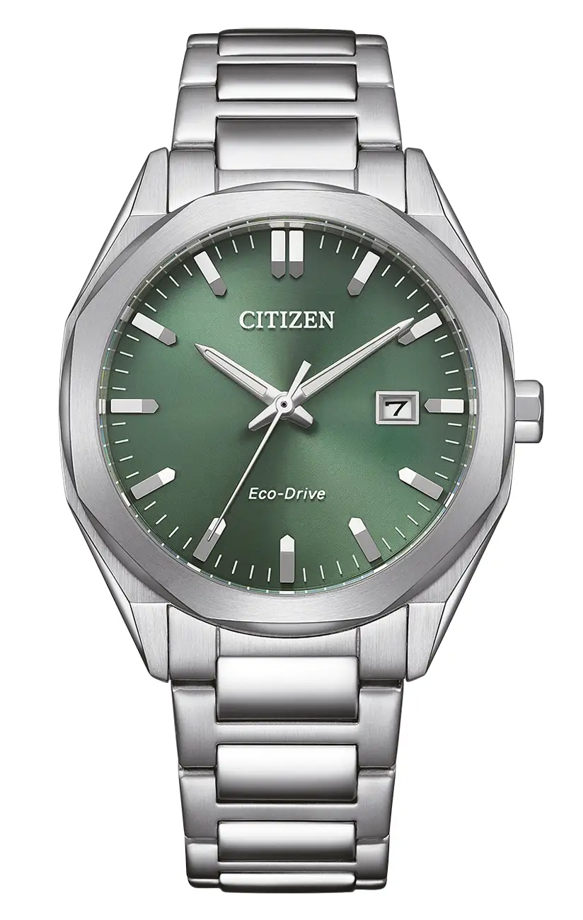Citizen Modern Eco-Drive BM7620-83Y jsou vytříbené pánské hodinky, které vsázejí na nadčasovou klasiku a kompaktní rozměry. Pouzdro o průměru 38 mm a malá výška nepřesahující 10 mm zajišťují, že model perfektně zapadne pod manžetu košile a nabídne diskrétní eleganci. Ústředním prvkem designu je číselník v tlumeném zeleném odstínu, zdobený minimalistickými liniovými indexy, které celku dodávají moderní a přehledný vzhled.