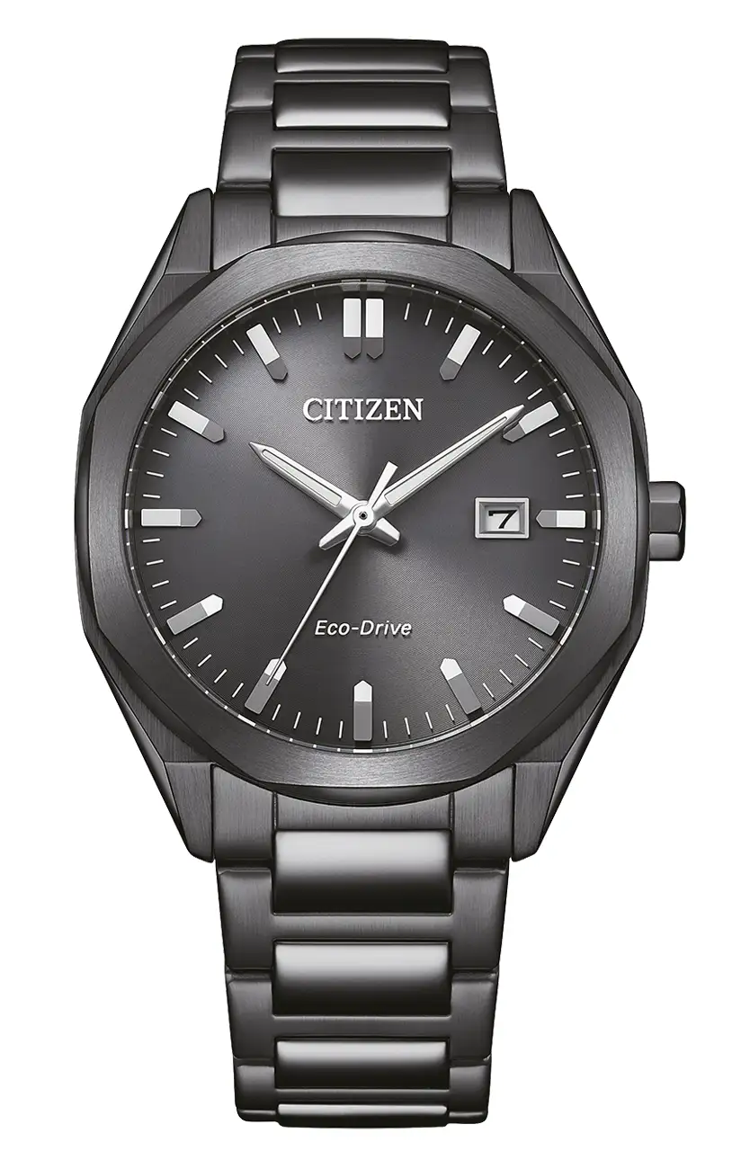 Citizen Modern BM7620-80H je interpretací klasické elegance v tmavém, moderním pojetí. Charakteristickým rysem tohoto modelu je pouzdro a náramek vyrobené z nerezové oceli, které jsou v celém rozsahu pokryty odolnou povrchovou úpravou v barvě hlubokého antracitu. Tmavá barevnost dodává hodinkám intrigující, téměř tajemný charakter, který dokonale ladí se šedým číselníkem se slunečním brusem. Toto spojení zajišťuje, že hodinky nedominuji stylizaci, ale tvoří její vytříbené, technické doplnění.
