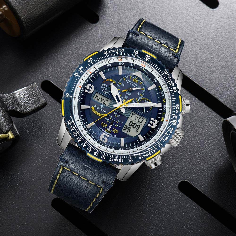 Modrí andělé jsou elitní demonstrační letkou amerického námořnictva, která je známá svou precizností a grácií v každém ze svých vzdušných manévrů. Tato přesnost a ladnost je zřejmá u hodinek Citizen Promaster Blue Angels Skyhawk AT JY8078-01L se super přesným měřením času, které zajišťuje funkce Radio Controlled . Model je dostupný v nerezovém pouzdře o průměru 45 mm . V horní části pouzdra japonský výrobce umístil otočný letecký prstenec v modré a žluté barvě. Stejné barvy jsou i na ciferníku. Insignie Blue Angels se nachází na ciferníku a zadní straně pouzdra, na spodní straně hodinek. Safírové sklíčko odolné proti poškrábání s antireflexní vrstvou, která dodává čitelnost a jasnost. Srdcem hodinek je mechanismus Eco-Drive poháněný jakýmkoli světlem – extrémně účinné, ekologické a ekonomické řešení, které eliminuje nutnost výměny baterie.