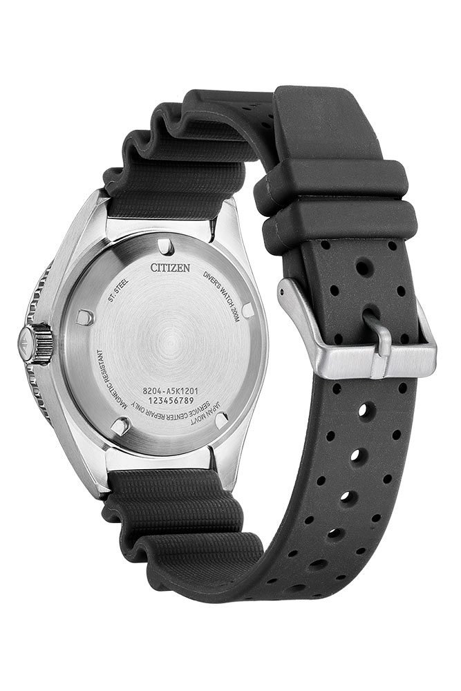 Hodinky Citizen NY0120-01EE ukazují čas dvěma čitelnými ručičkami vyplněnými svítícím luma a štíhlou vteřinovou ručkou. Kolem ciferníku jsou velké čitelné indexy, které také svítí ve tmě. Značka Citizen zajistila čitelnost ciferníku za všech podmínek. Tři hodiny jsou zobrazení dne a data, které informuje o aktuálním dni v týdnu a měsíci. Dvanáctka je hrdé logo Citizen a šestka informuje o mechanismu a voděodolnosti hodinek. Šedý ciferník je krytý tvrdým minerálním sklem. Hodinky mají japonský automatický mechanismus. Citizen Miyota je pohyb poháněný pohybem zápěstí. Značka Citizen už stihla všechny své příznivce zvyknout na přesný chod svých časomíry. Prezentovaný model není výjimkou a navíc zaručuje rezervu chodu přibližně 42 hodin.