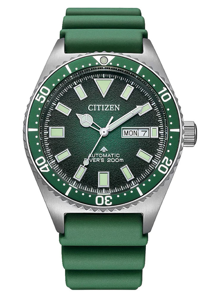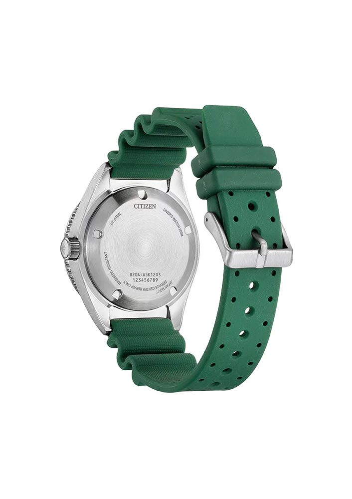 Hodinky Citizen NY0121-09XE ukazují čas dvěma čitelnými ručičkami vyplněnými svítícím luma a štíhlou vteřinovou ručkou. Kolem ciferníku jsou velké čitelné indexy, které také svítí ve tmě. Značka Citizen zajistila čitelnost ciferníku za všech podmínek. Tři hodiny jsou zobrazení dne a data, které informuje o aktuálním dni v týdnu a měsíci. Dvanáctka je hrdé logo Citizen a šestka informuje o mechanismu a voděodolnosti hodinek. Zelený ciferník je krytý tvrdým minerálním sklem. Hodinky mají japonský automatický mechanismus. Citizen Miyota je pohyb poháněný pohybem zápěstí. Značka Citizen už stihla všechny své příznivce zvyknout na přesný chod svých časomíry. Prezentovaný model není výjimkou a navíc zaručuje rezervu chodu přibližně 42 hodin.