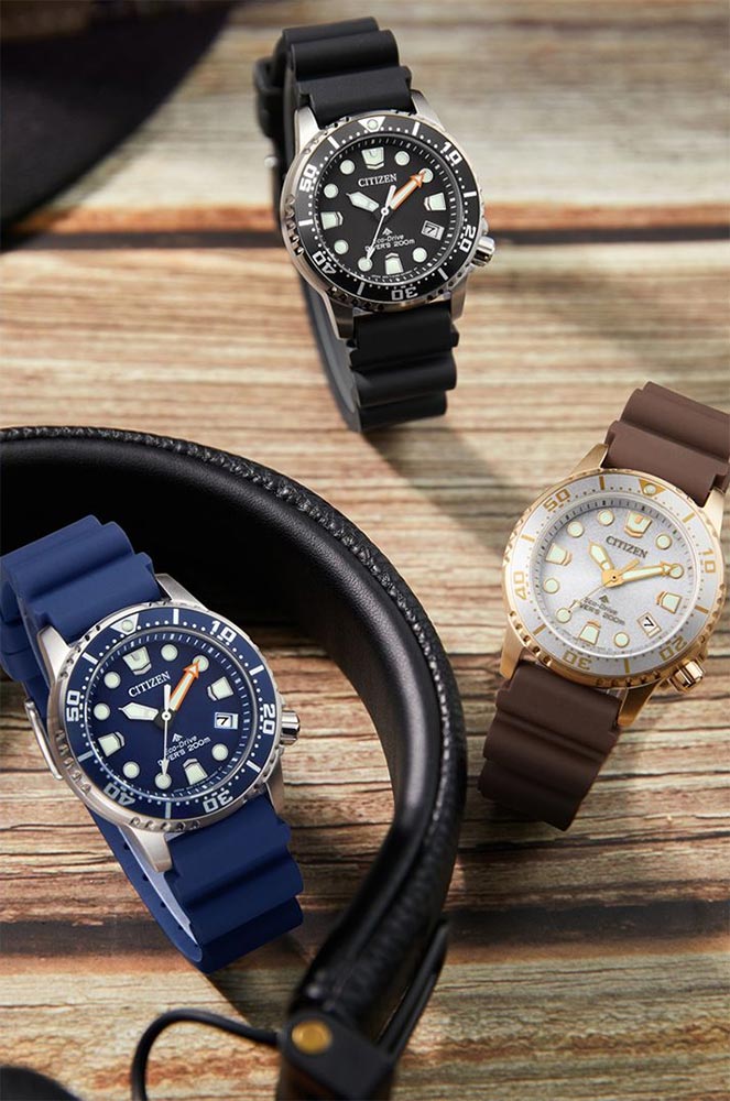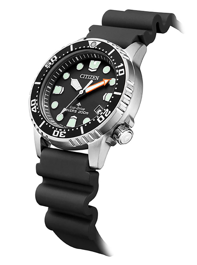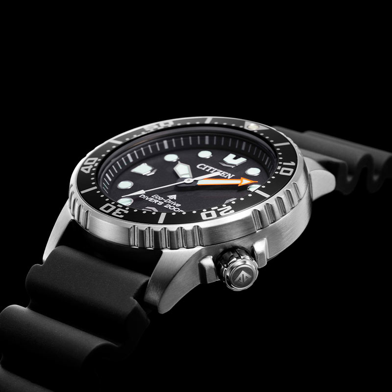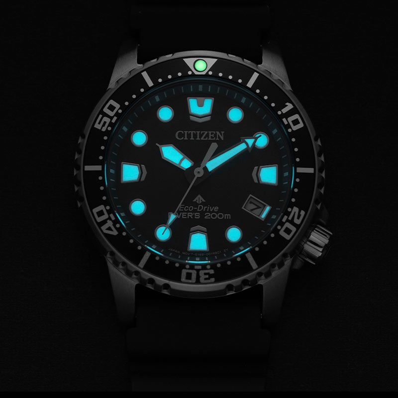 Speciálně tvarovaný voděodolný gumový řemínek umožňuje vodě volně stékat přes zápěstí a nepřekáží při potápění. Velmi silná vrstva luminiscenční látky na rukou a indexech zajišťuje viditelnost ve tmě a pod vodou. Díky spolehlivému a ekologickému solárnímu mechanismu Eco-Drive není výměna baterie nutná. Solární hodinky Citizen Promaster navíc vygenerují energii potřebnou k napájení i při slabém osvětlení a v naprosté tmě budou fungovat až 6 měsíců.