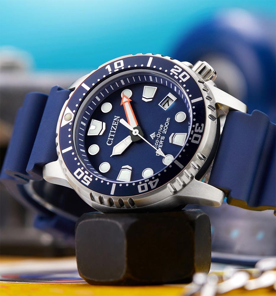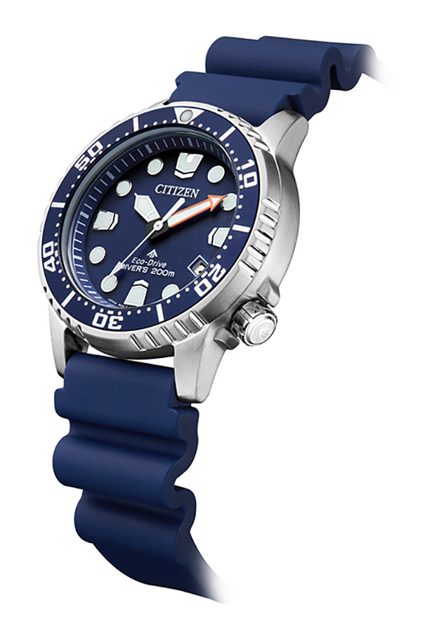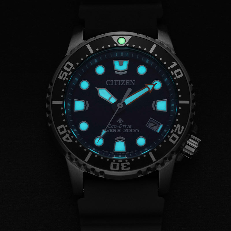 Voděodolný gumový řemínek se speciálním tvarem umožňuje vodě volně stékat přes zápěstí a nepřekáží při potápění. Velmi silná vrstva luminiscenční látky na rukou a indexech zajišťuje viditelnost ve tmě a pod vodou. Díky spolehlivému a ekologickému solárnímu mechanismu Eco-Drive není výměna baterie nutná. Solární hodinky Citizen Promaster navíc vygenerují energii potřebnou k napájení i při slabém osvětlení a v naprosté tmě budou fungovat až 6 měsíců.