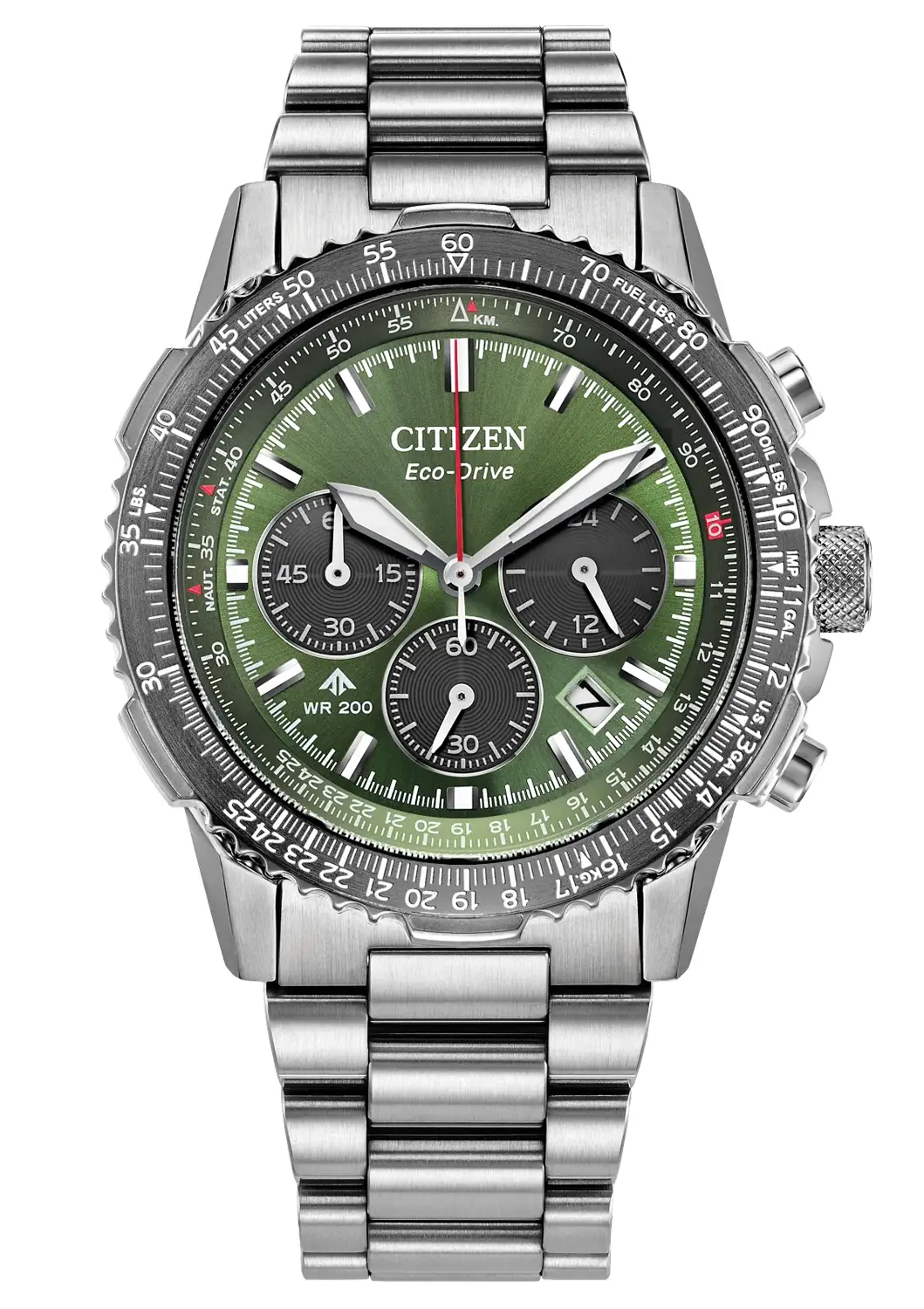 Promaster Air Navihawk CA4664-60W jsou hodinky, které harmonicky spojují leteckou přesnost s jedinečným stylem. Sportovní pouzdro o průměru 40 mm a pevný náramek z odolné nerezové oceli vytvářejí strukturu, která zaujme ostrými detaily a rafinovaným povrchem. Zelený číselník s kontrastními subčíselníky chronografu a 24hodinovým zobrazením času, stejně jako logaritmická stupnice, zajišťují vynikající čitelnost a všestrannost za všech podmínek.