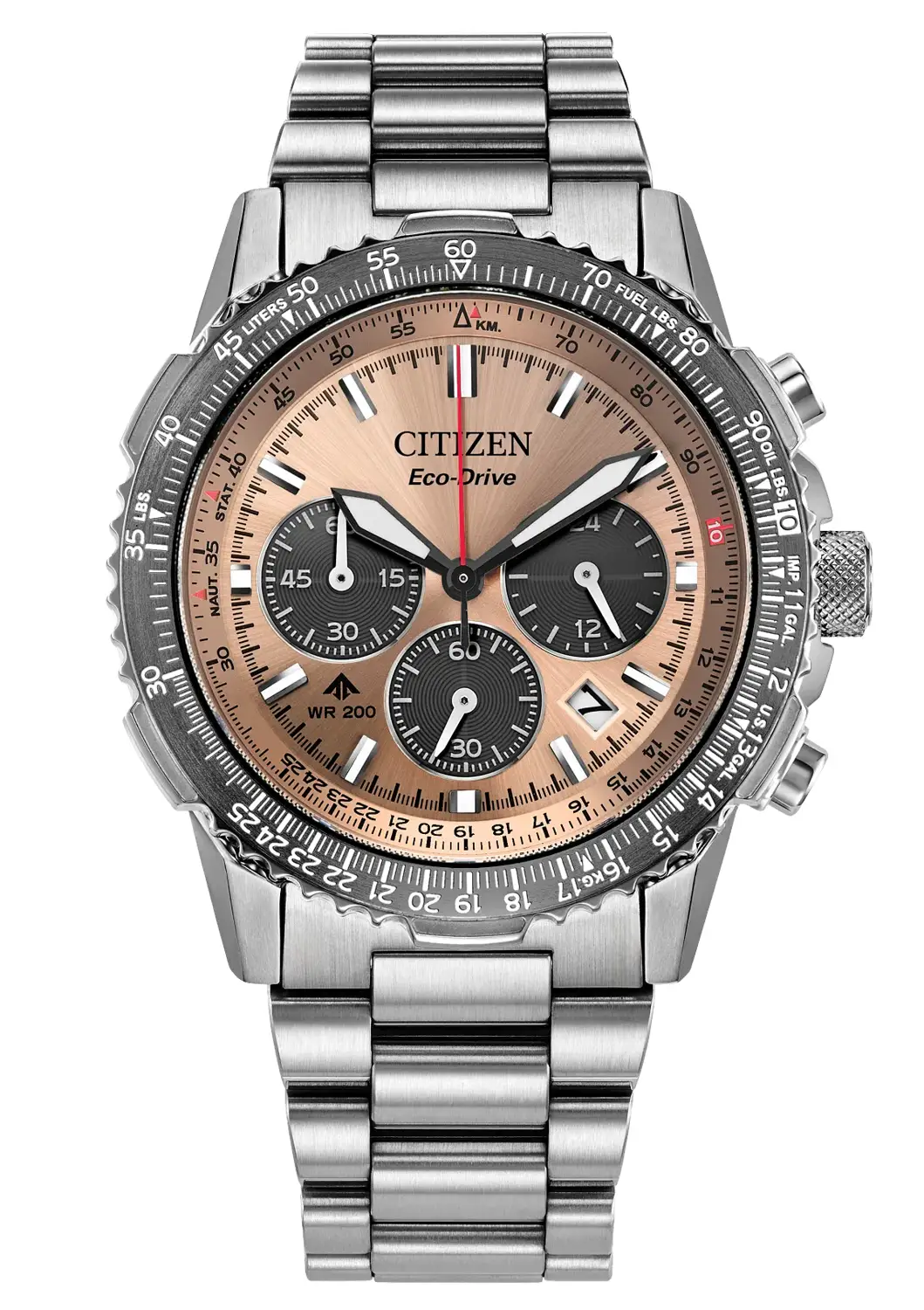 Promaster Air Navihawk CA4664-60X jsou hodinky, které harmonicky spojují leteckou přesnost s jedinečným stylem. Sportovní pouzdro o průměru 40 mm a pevný náramek z odolné nerezové oceli tvoří strukturu, která zaujme svými ostrými detaily a rafinovanou povrchovou úpravou. Měděný číselník lososové barvy s kontrastními subčíselníky chronografu a 24hodinovým zobrazením času, stejně jako logaritmická stupnice, zajišťují vynikající čitelnost a všestrannost za všech podmínek.