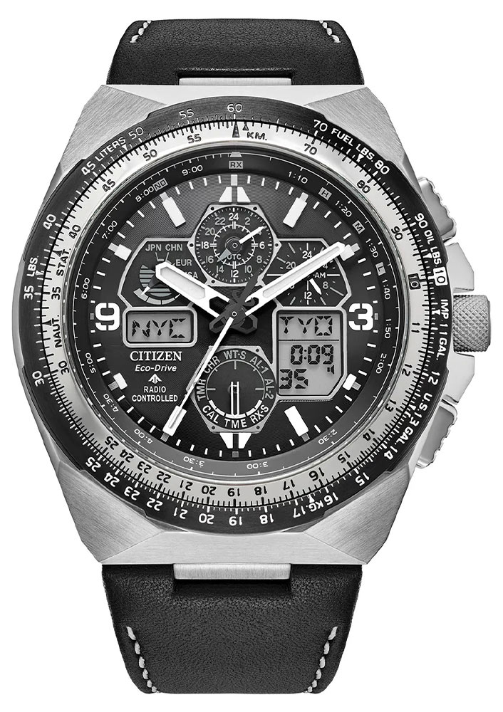 - Denní korekce času. Ruční nastavení času již není nutné. Jednou denně hodinky automaticky obdrží časový signál na základě atomových hodin. Citizen Promaster Skyhawk Radio Controlled přijímá rádiové signály a synchronizuje se denně, ale pouze pozdě v noci, aby se zabránilo tomu, že signály z chytrých telefonů a jiných elektronických zařízení narušují zarovnání.