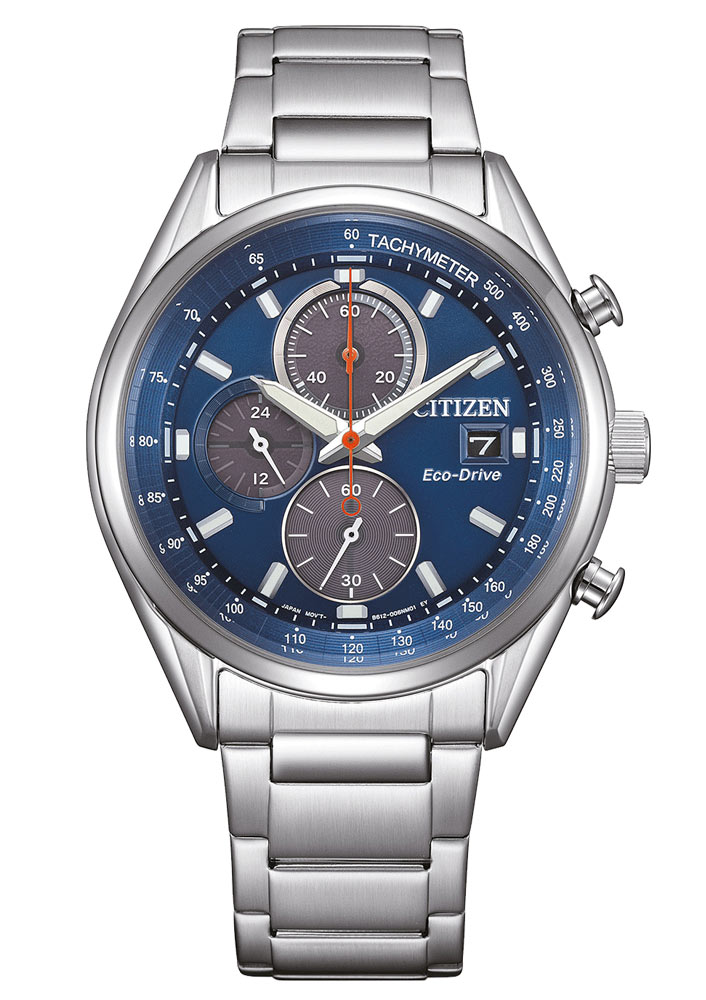 Citizen Racing Chrono CA0459-79L je kombinací preciznosti, sportovního ducha a pokročilé technologie. S modrým ciferníkem a oranžovými ručičkami stopek odrážejí hodinky dynamický svět sportu.