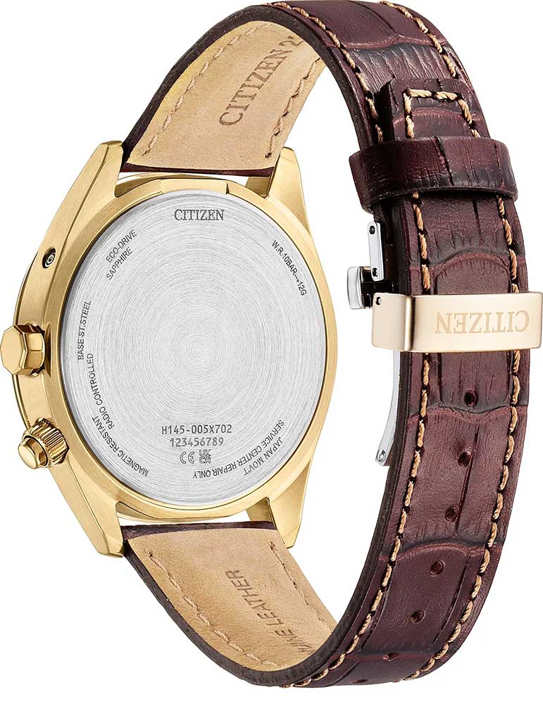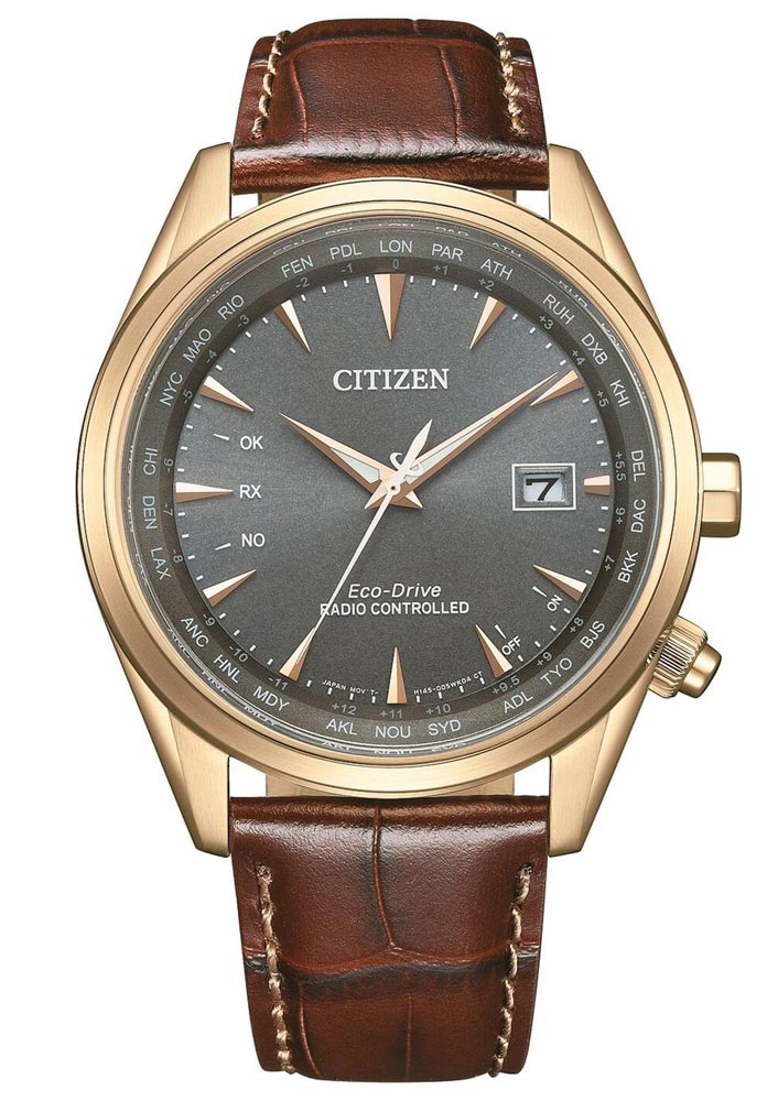 Citizen Radio Controlled CB0273-11H je také velmi funkčním hodinkám. Mechanismus H145 zaručuje automatickou aktualizaci času, data a trvalého kalendáře. Tloušťka je šedá a víceúrovňová, s nanesenými zlatými klinovými indexy a ručkami pokrytými světlovodivým materiálem, což usnadňuje čtení času za slabého osvětlení. S páskem z pravé kůže, zlatým pouzdrem o velikosti 43 mm, safírovým sklíčkem odolným proti poškrábání a zvýšenou vodotěsností až do 100 metrů, jsou tyto japonské rádiově řízené hodinky kombinací elegance, přesnosti a trvanlivosti.