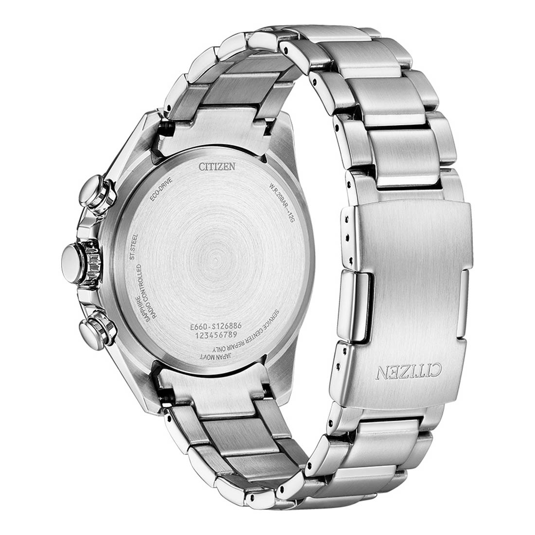 Nejdůležitější částí hodinek je neuvěřitelně přesný solární Machineek Eco-Drive . Časomíra ukazuje vždy správný čas, a to díky Machineku, který je řízen rádiovými vlnami. Atomové hodiny, ze kterých je signál přijímán, jsou vybaveny ohromující odchylkou, pouze jedna sekunda každých 1 000 000 let, absolutní přesností. Jednou denně mechanismus Eco-Drive Radio Controlled automaticky přijme rádiový signál a sám se synchronizuje, ale až pozdě v noci, aby tuto činnost nerušila jiná elektrická zařízení. Hodinky Citizen jsou poháněny světlem, ciferník funguje jako solární panel, který přeměňuje světelnou energii na energii, která pohání hodinky a ukládá je do speciální baterie.