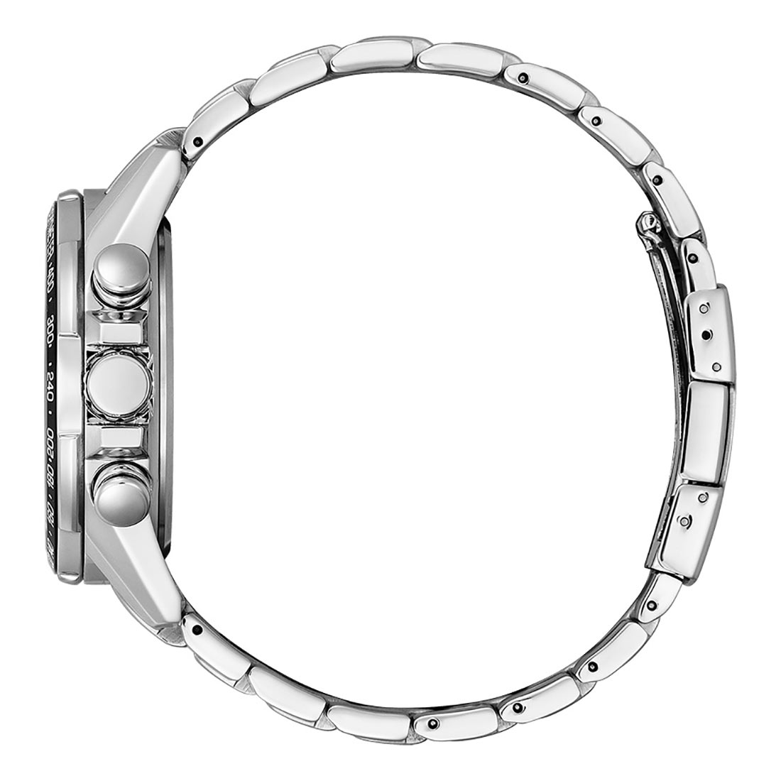Radio Controlled pánské hodinky Citizen CB5914-89E s typickou mužskou velikostí. 43mm pouzdro se plynule připojuje k ocelovému náramku pomocí zapínání na knoflík. Tvar pouzdra chrání tlačítka stopek a korunku tím, že je obalí, takže máme jistotu, že nedojde k jejich náhodnému ulomení. V horní části pouzdra Citizen umístil safírové sklo odolné proti poškrábání. Velké, jasné ručičky a tlusté jednoduché indexy jsou vyplněny luminiscenční látkou, která ve tmě osvětluje číselník.