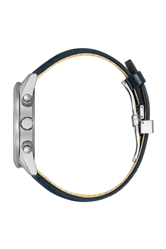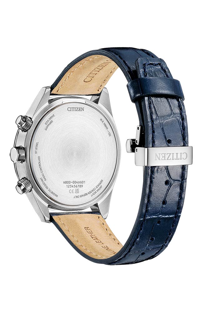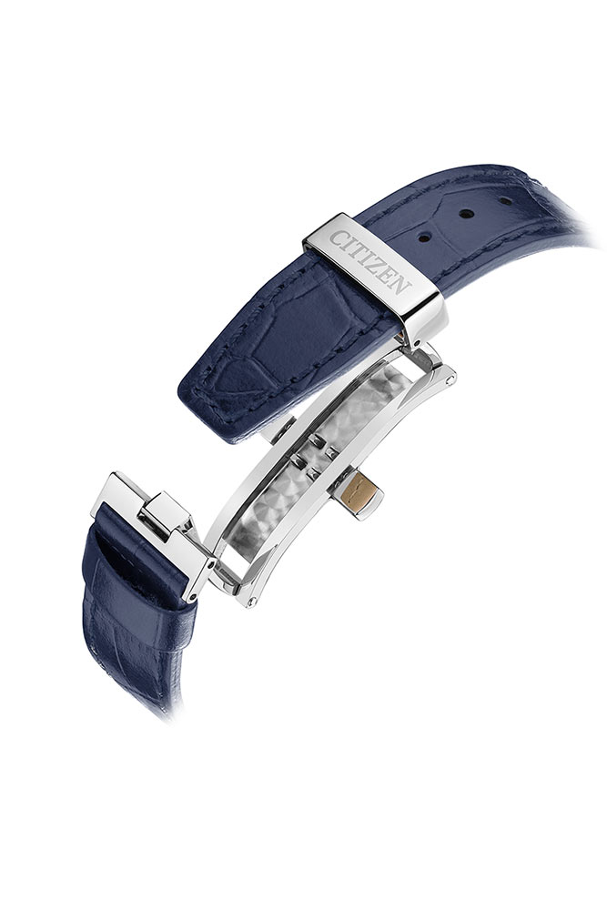 Pánské hodinky Citizen Radio Controlled Chronograph mají kulaté pouzdro vyrobené z nerezové oceli 316L odolné proti korozi. Nerezová ocel se vyznačuje mimořádnou životností a odolností vůči vnějším faktorům, díky čemuž je ideální volbou pro každodenní použití. Funkční tlačítka a korunka jsou tradičně umístěny na pravé straně pouzdra. Hodinky Citizen Radio Controlled s chronografem o velikosti 43 mm jsou spárovány s měkkým, pohodlným a elegantním modrým řemínkem z přírodní kůže. Řemínek se bezpečně obepne kolem vašeho zápěstí díky motýlkové sponě na dva knoflíky.