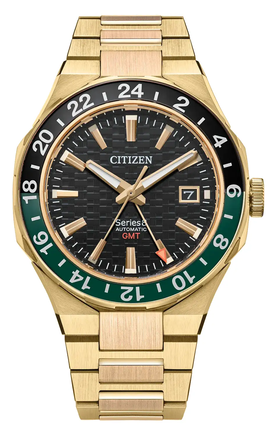 Sportovní pánské hodinky Citizen Series 8 GMT jsou navrženy pro ty, kteří často cestují nebo pracují v různých časových pásmech. Díky funkci GMT a nezávisle nastavitelné hodinové ručce může uživatel snadno sledovat dva časové údaje současně – funkce neocenitelná pro piloty, podnikatele i všechny cestovatele. Pod elegantním safírovým sklem se nachází pečlivě navržený černý číselník s texturovaným povrchem, inspirovaný noční oblohou Tokia. Jeho vzor mřížky odkazuje na japonský symbol prosperity, čímž dodává hodinkám Citizen Series 8 880 GMT s funkcí druhého časového pásma hloubku a jedinečný charakter. Růžově zlaté indexy a luminiscenční ručky zajišťují vynikající čitelnost i při slabém osvětlení. Další praktickou funkcí je datumovka umístěná na třetí hodině, která zdůrazňuje praktičnost těchto hodinek, činí je skvělým nástrojem pro každodenní správu času a spojuje eleganci s funkčností.