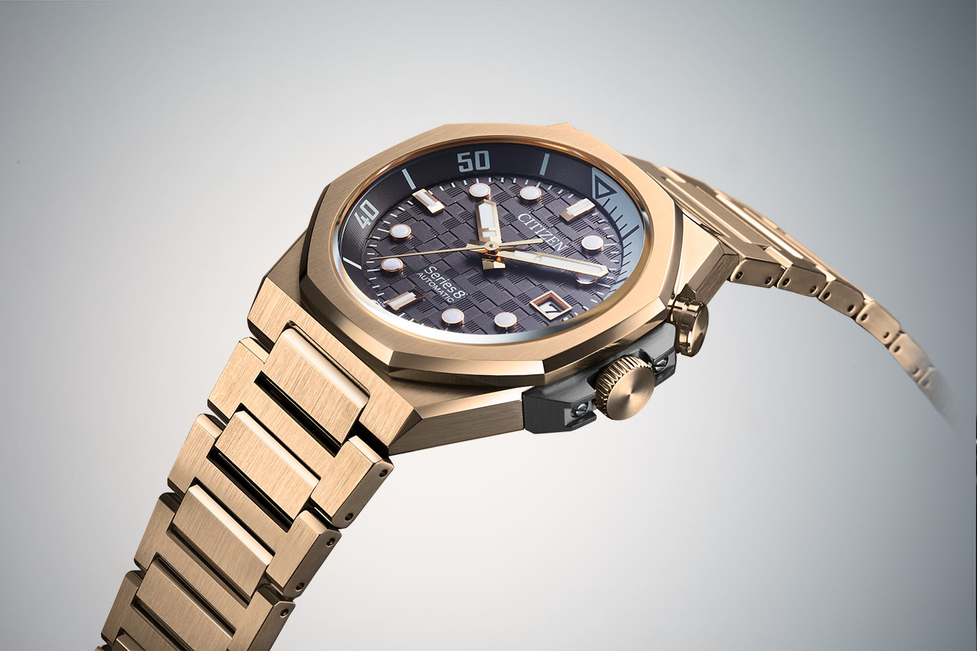 Textura ciferníku těchto pozlacených hodinek, která byla představena u modelu 880 Mechanical v roce 2023, čerpá inspiraci z noční oblohy nad Tokiem, plné mnoha mrakodrapů s různými tvary oken, což vytváří moderní interpretaci tradičního japonského vzoru mřížky. Tento vzor, který je symbolem bohatství v japonské kultuře, byl nyní osvěžen a je ještě výraznější na ciferníku hodinek ze sbírky Series 8. Využitím složených textur ciferníku inspirovaných panoramatem Tokia a japonskými motivy prosperity, použité indexy a luminescentní ručičky zdůrazňují sportovní vzhled modelu Series 8 890, vyvažující výrazný styl s čitelností.