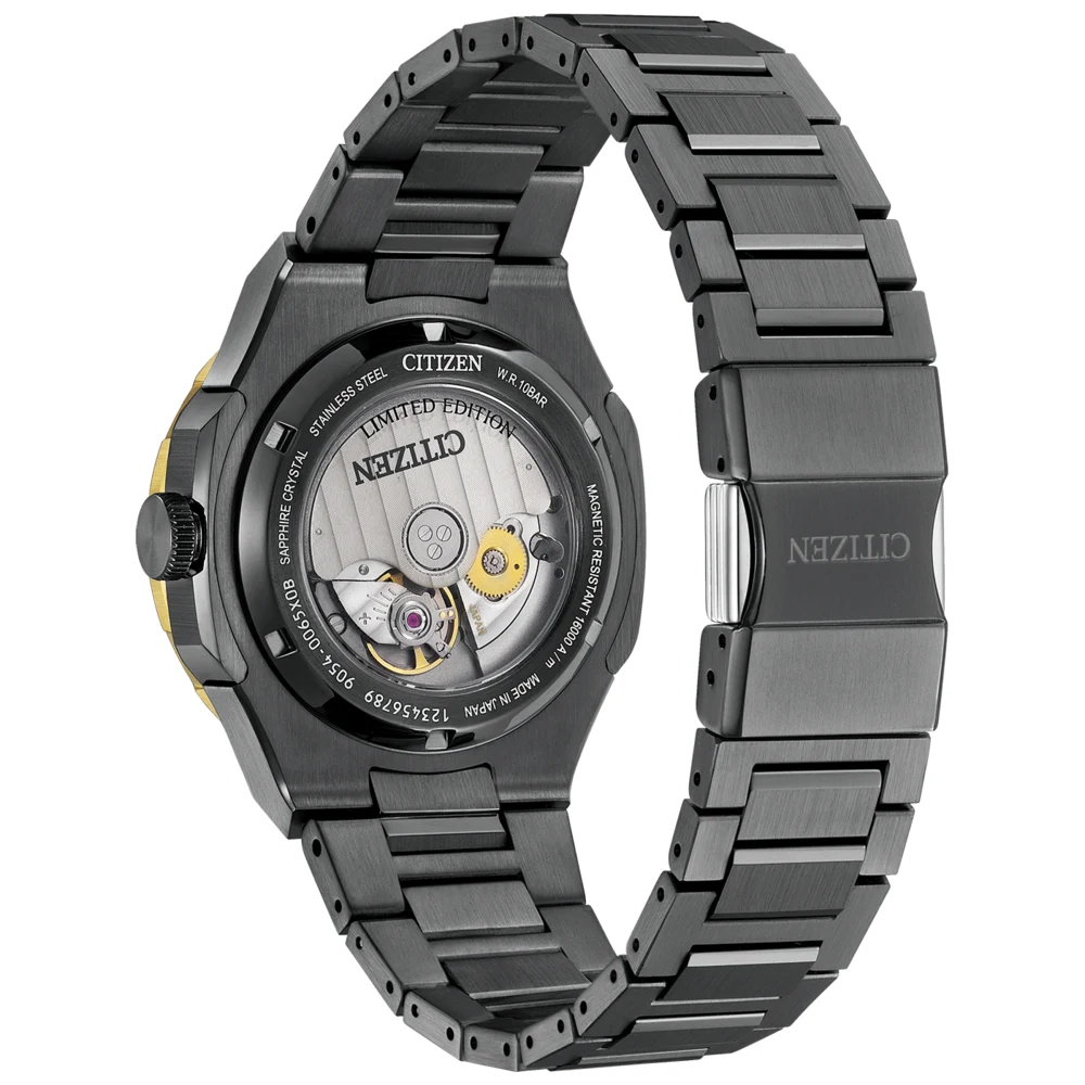 Mas solidní ocelový náramek v grafitové barvě s bezpečnou dvojitou sponou, který podtrhuje moderní, městský charakter časoměřiče. Citizen Series 8 GMT Limited Edition NB6035-55H je volbou pro milovníky automatických hodinek, kteří očekávají vynikající provedení, funkčnost a design, vedle kterého nelze projít bez povšimnutí.