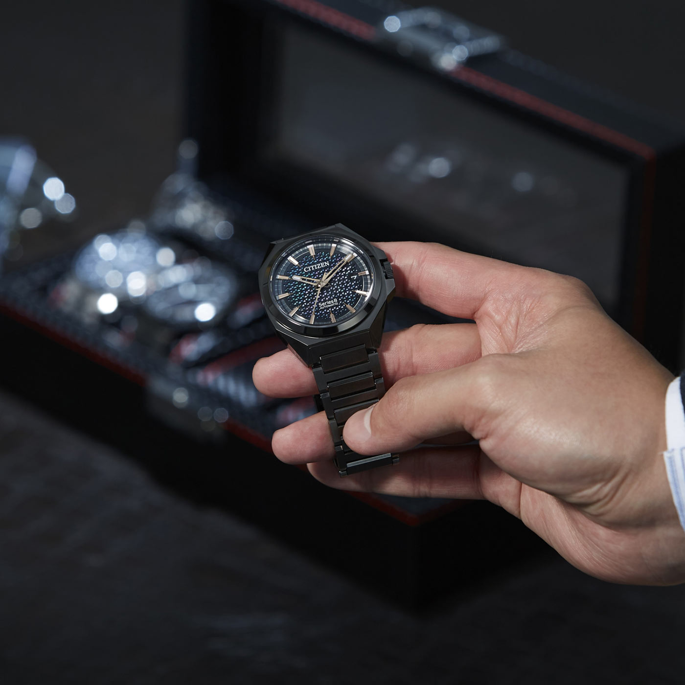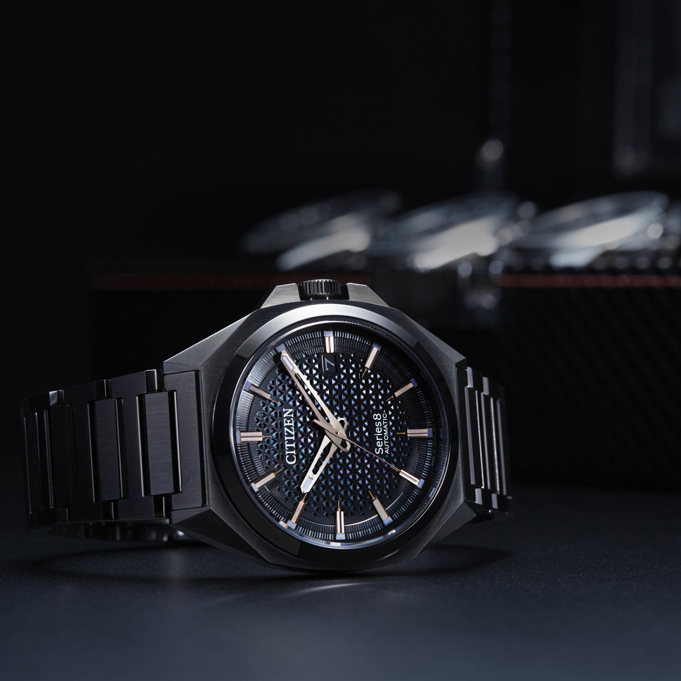 Citizen Series 8 NA1015-81Z jsou mechanické pánské náramkové hodinky s neustále se měnícím výrazem a zářivou brilancí. Čtyřdílný plášť z broušené a leštěné nerezové oceli o průměru 40 mm s černým lakováním zdůrazňuje sportovní charakter tohoto modelu. Působivé tvary a poutavá elegance představují nové akcenty luxusu a vytvářejí hodinky, které působí mocným dojmem.