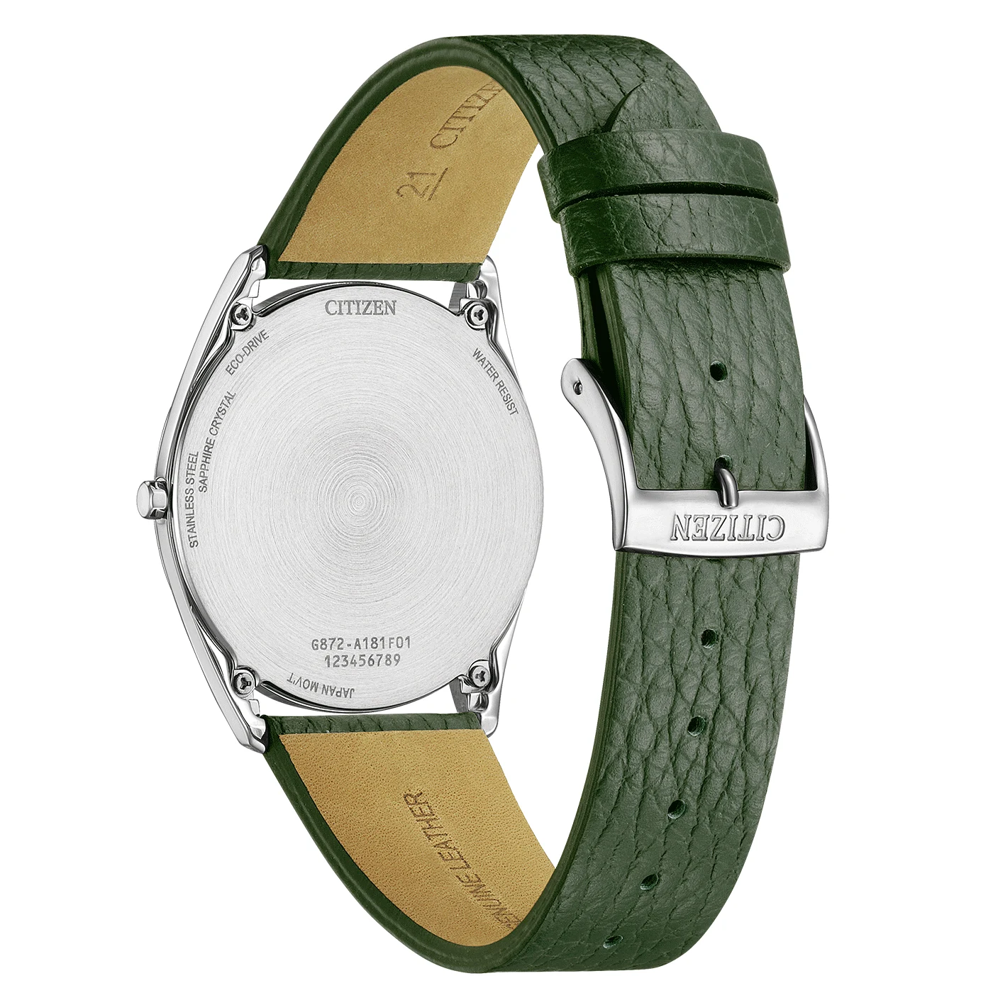Citizen Suratto AR3120-32X je volbou pro ty, kteří hledají hodinky s nadčasovým charakterem, spojující elegantní design s inovativní technologií Eco-Drive. Zelený číselník a řemínek dodávají modelu jedinečnost a odlišují jej od klasických variant, čímž se stává moderním doplňkem jak k ležérním, tak k elegantnějším stylizacím.