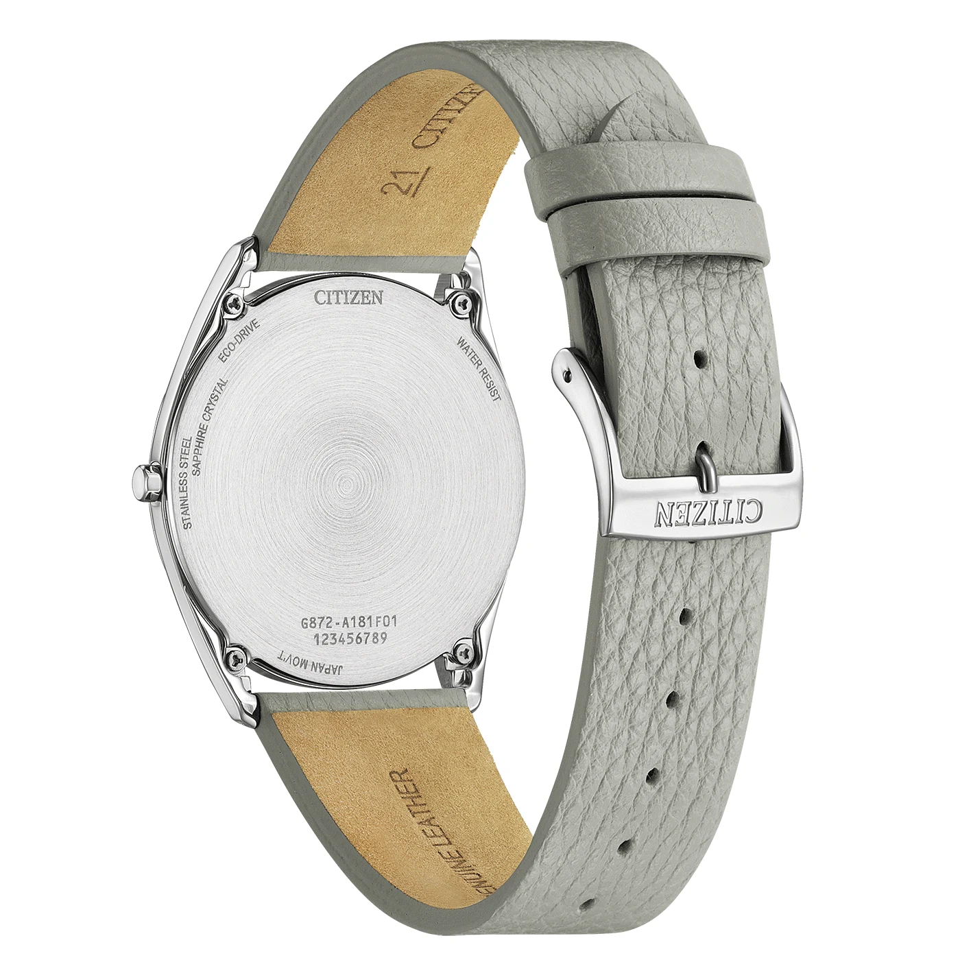 Srdcem hodinek je mechanismus Eco-Drive kalibr G872, který čerpá energii z jakéhokoli zdroje světla – přirozeného i umělého. Díky tomu není potřeba výměna baterie a rezerva chodu dosahuje až 210 dní. Číselník chrání odolné safírové sklíčko, které uchovává dokonalou průzračnost po dlouhá léta. Vodotěsnost na úrovni 3 bar zajišťuje odolnost vůči drobnému postříkání, takže se hodinky skvěle hodí pro každodenní použití. Je to volba pro ty, kteří si cení vytříbené jednoduchosti, nadčasového stylu a moderní technologie ukryté v ultratenké formě.