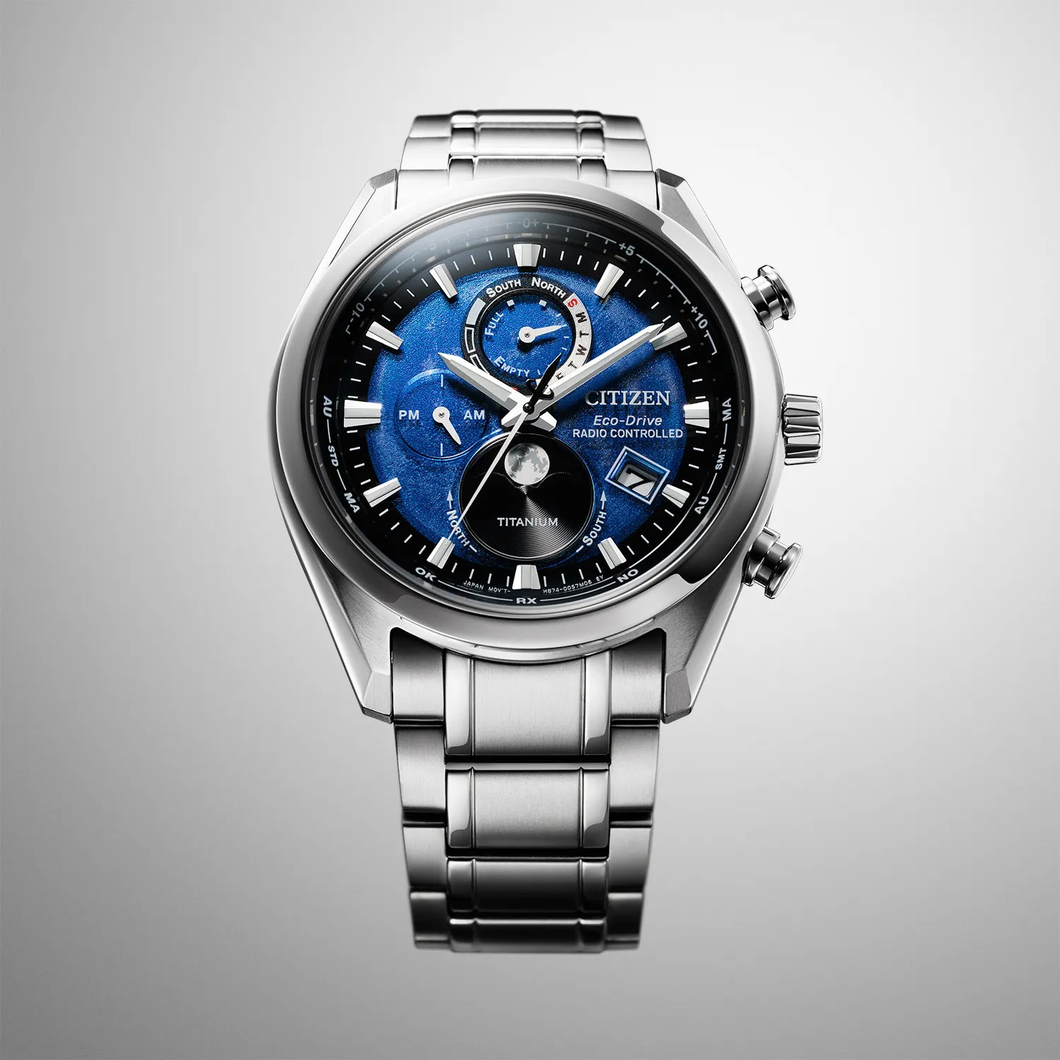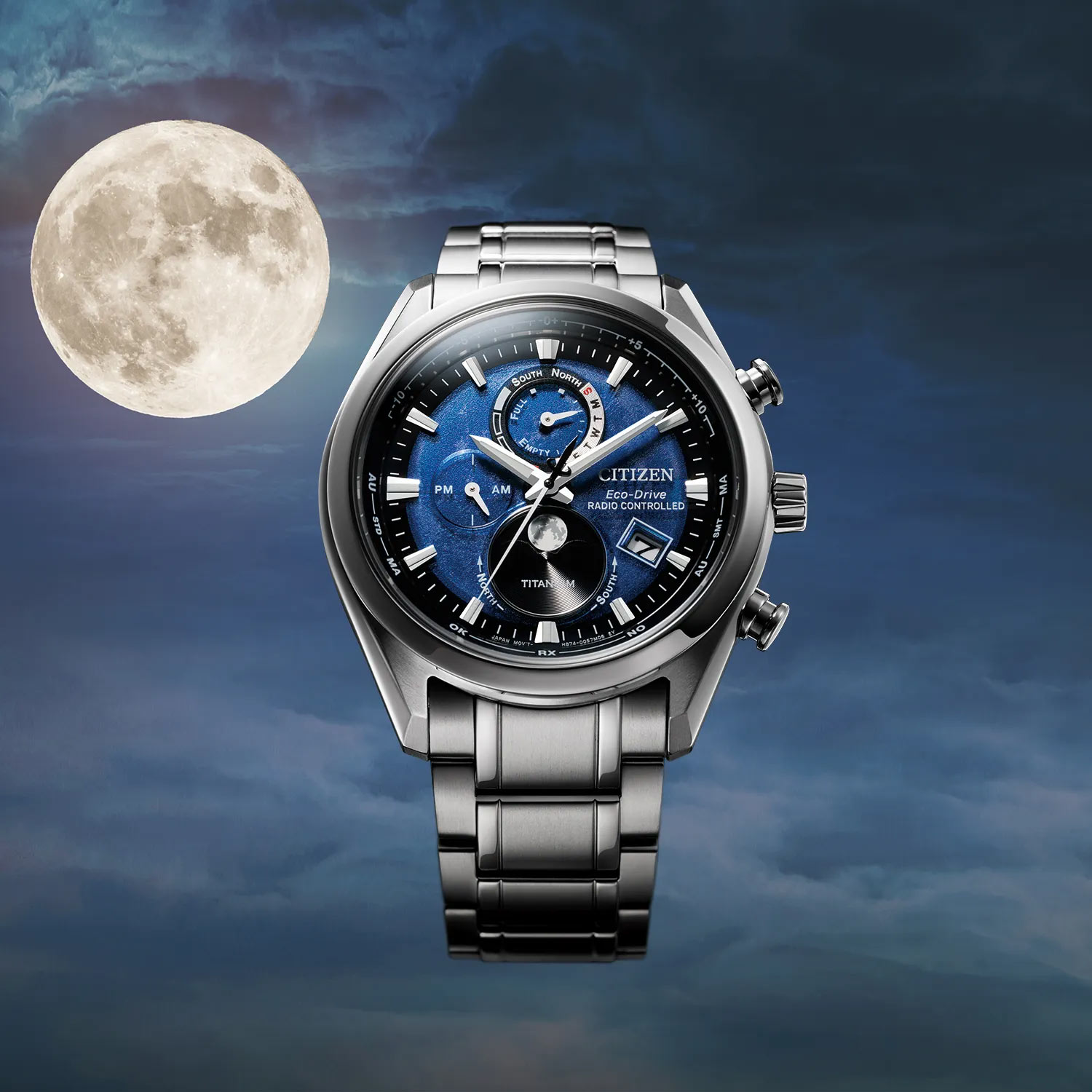 Pánské hodinky Citizen Tsukiyomi Moonphase Titanium Radio Controlled BY101081L mají kulaté pouzdro vyrobené z titanu, které je extrémně lehké a odolné proti korozi. Hodinky jsou nabízeny ve velikosti 43 mm a jsou spárovány s titanovým náramkem s bezpečnou a pohodlnou motýlkovou sponou. Na pravé straně pouzdra jsou funkční tlačítka a korunka. Na rubu je titanový kryt, který utěsňuje celou konstrukci. Uvnitř krytu se nachází solární mechanismus Citizen Eco-Drive, který je napájen libovolným světelným zdrojem. Mechanismy Eco-Drive nevyžadují výměnu baterie, což je důležitý prvek v boji za ekologii. Pánské hodinky Citizen Tsukiyomi Moonphase BY1010-81L jsou první hodinky na světě, jejichž funkce fáze měsíce je řízena automaticky. Hodinky Citizen Radio Controlled mají velmi přesný rádiem řízený čas. Bere časový signál z atomových hodin s přesností +-1s.