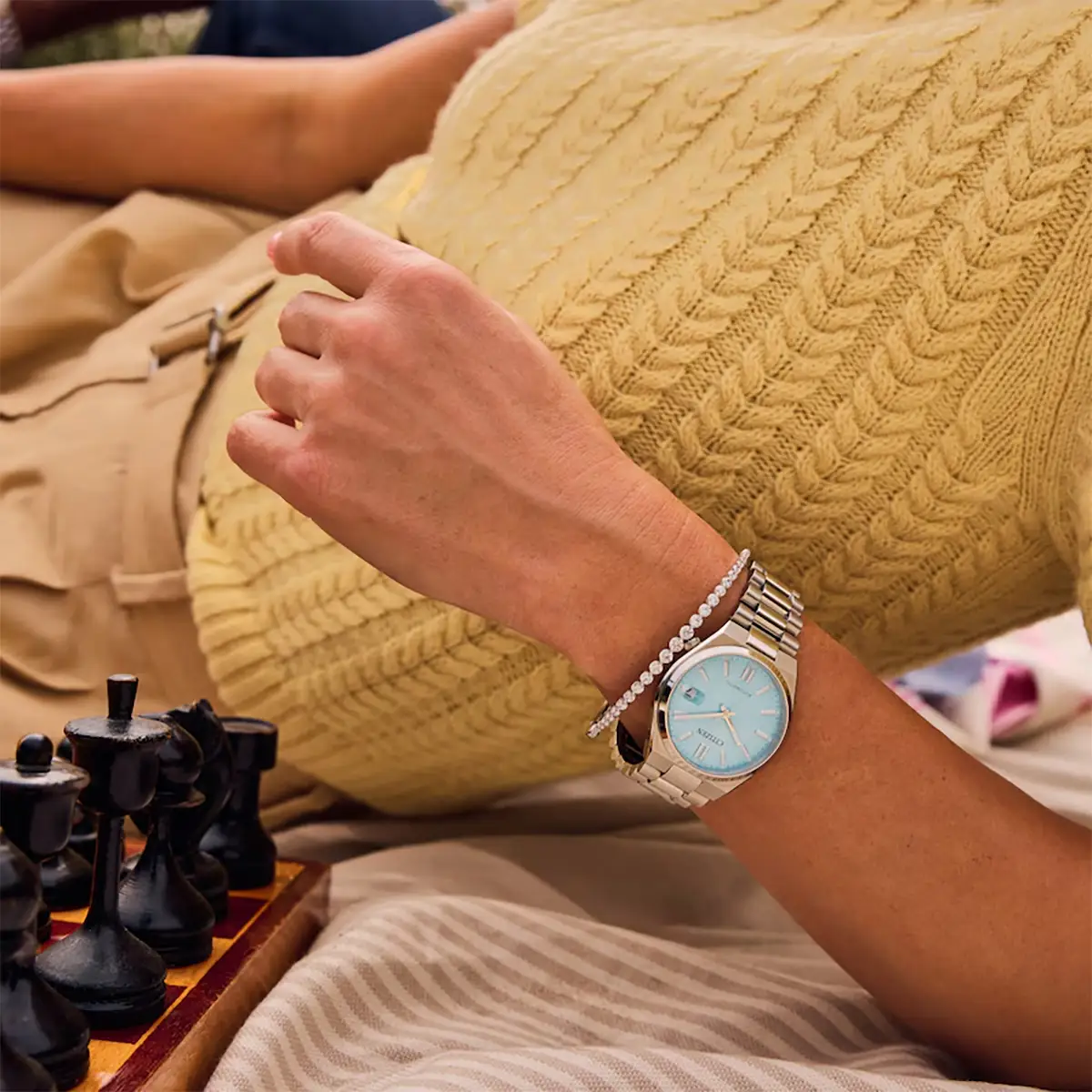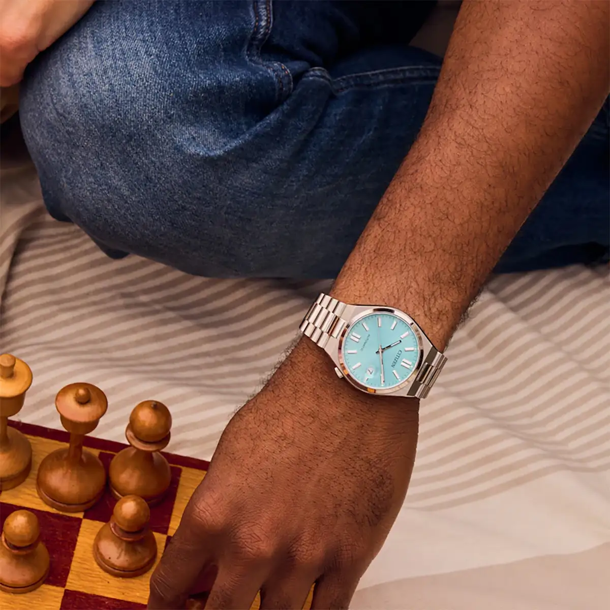 Japonský Citizen Tsuyosa jsou unikátní hodinky s univerzální velikostí 37 mm , které budou vypadat skvěle na dámském i pánském zápěstí. Pouzdro plynule navazuje na ocelový náramek a zajišťuje pohodlné nošení a elegantní vzhled. Bezpečné zapínání na dva knoflíky zajišťuje pohodlí a bezpečné uchycení. Na zadní straně pouzdra je průhledné sklo, které umožňuje obdivovat precizní práci japonského mechanismu Citizen Automatic.