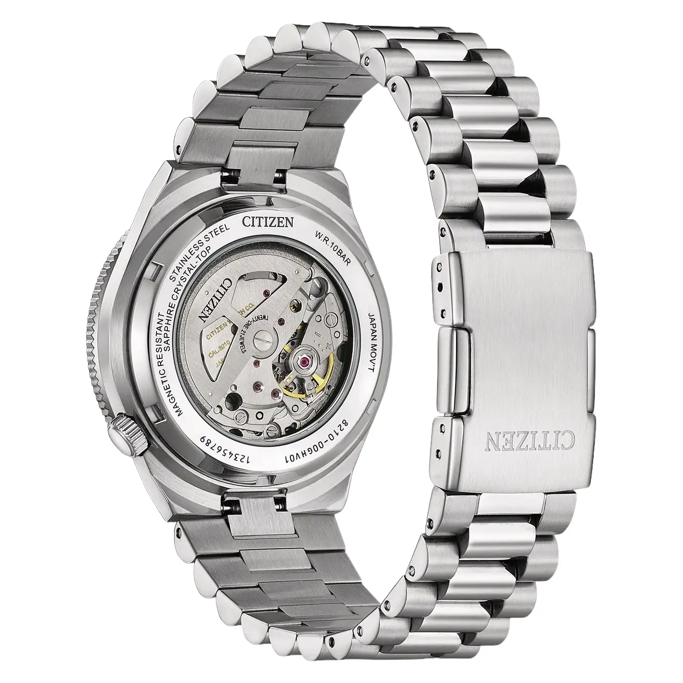 Hodinky jsou usazeny na masivním ocelovém náramku s třířadým článkováním, který kombinuje matné plochy s leštěnými detaily a zajišťuje prestižní vzhled i vysokou odolnost. Vodotěsnost třídy 10 bar v kombinaci se šroubovacím průhledným dýnkem, skrz které lze obdivovat chod mechanizmu, činí z tohoto modelu mimořádně univerzálního společníka. Citizen NJ0230-59L je ideální volbou pro ty, kteří milují styl Tsuyosa, ale hledají hodinky s výraznějším sportovním pojetím.