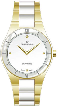 Dámské hodinky Continental 14703-LT727737 . Vkusná kombinace technologie a módního designu současného designu. Střední část bílého náramku a prsten zasazený do pouzdra jsou vyrobeny z nejkvalitnější keramiky. Materiál, který si získal sympatie hodinářů z celého světa. Mimořádná odolnost proti poškrábání (mnohem vyšší než u nejlepší oceli) činí tento model svěžím a atraktivním i po mnoha letech používání bez jakýchkoliv škrábanců. Celek doplňuje safírové sklíčko a velmi precizní švýcarský quartz Machineek, který je švýcarským standardem kvality této kolekce.