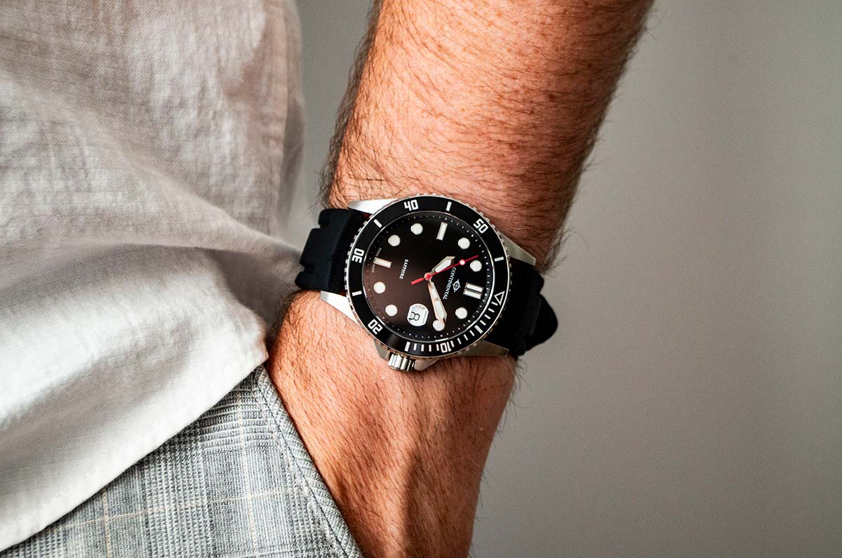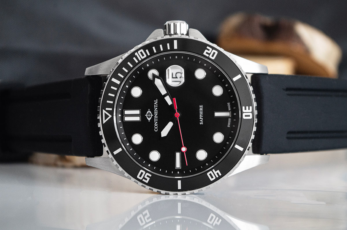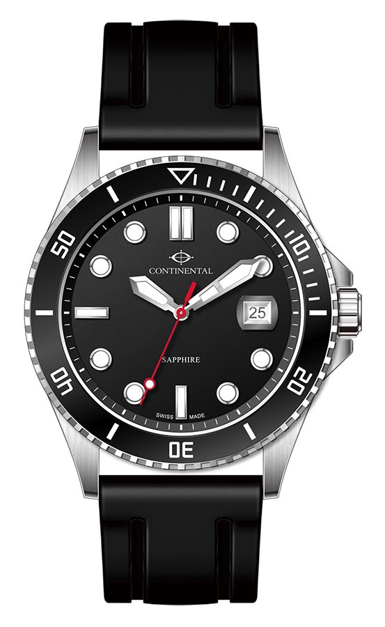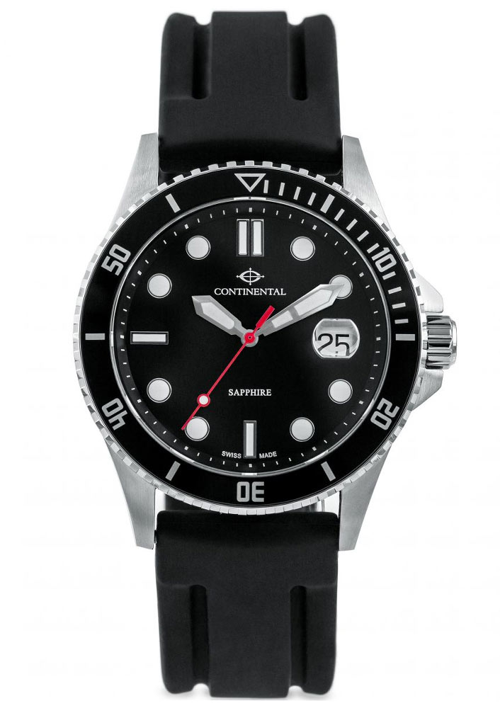 Pánské diverské hodinky Continental 20504-GD154430 jsou vybaveny švýcarským quartz Machinekem F06.115 s funkcí EOL, který skokem vteřinové ručičky o 4 vteřiny upozorní na nízký stav baterie. Černý ciferník s indexy a luminiscenčními indikacemi ve stylu diverských hodinek je krytý nejkvalitnějším safírovým sklem vysoce odolným proti poškrábání. Nad datovým okénkem je lupa. Na černém rámečku je minutová stupnice. Průměr pouzdra je 42 mm. Materiál, ze kterého je vyrobena, je vysoce odolná nerezová ocel odolná proti poškrábání a korozi. Jedná se o perfektní hodinky pro muže, kteří mají rádi sportovní diverské hodinky pro každodenní nošení.