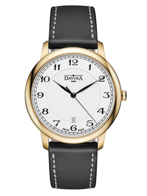 Pánské hodinky Davosa Amaranto z jsou elegantní hodinky s perfektní povrchovou úpravou. Kulaté, PVD pozlacené pouzdro v kombinaci s řemínkem z pravé kůže vytváří dokonalou kompozici. Stříbrný ciferník s arabskými číslicemi obohacený o datumové okénko na 6. hodině, díky kterému můžeme odečíst den v měsíci. Srdcem hodinek je quartzový Machineek Ronda 715 Swiss Made. Díky své eleganci bude dokonalým doplňkem pro každého milovníka klasického designu.