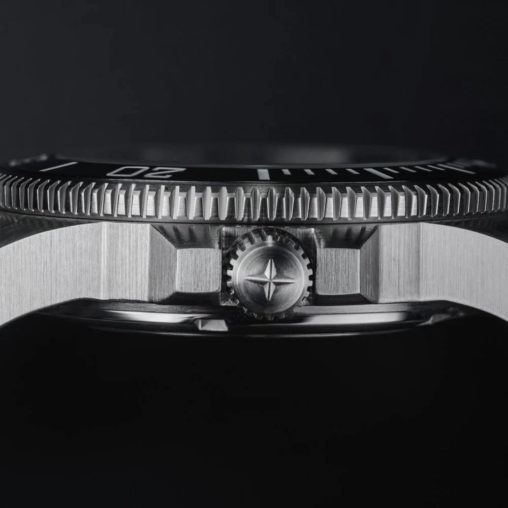 Pánské hodinky Davosa Argonautic 39 161.532.50 mají kulaté pouzdro z nerezové oceli 316L ve stříbrné barvě. Hodinky o průměru 39.50 mm jsou vodotěsné do hloubky 200 metrů. Můžete se s ním potápět bez obav z poškození mechanismu. Uvnitř pouzdra je instalován automatický švýcarský strojek, který je poháněn pohybem zápěstí. Důležitou ochranou celé konstrukce je šroubovací korunka a záda pouzdra. Na přední straně pouzdra je otočná luneta se stupnicí, která vám pomůže sledovat ubíhající čas v minutách. Černý kroužek na lunetě je vyroben z odolné keramiky. Výrobce svůj produkt zkombinoval s pevným náramkem s motýlkovým zapínáním. Bezpečně se obepne kolem vašeho zápěstí a zajistí pohodlí při používání tohoto modelu.