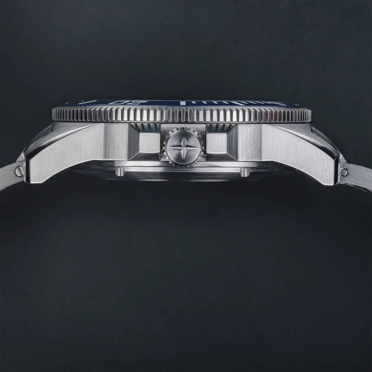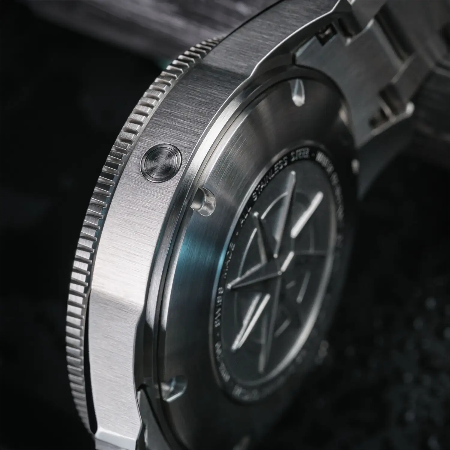 Robustní pouzdro z ušlechtilé oceli o průměru 41,50 mm kombinuje saténové plochy s leštěnými hranami, čímž vytváří dynamický tvar s nádechem elegance. Černá keramická luneta s přesnou potápěčskou stupnicí umožňuje bezpečné měření času při ponorech. Šroubovací korunka a integrovaný automatický heliový ventil jsou klíčovými prvky profesionálního diveru, připraveného čelit extrémním podmínkám.