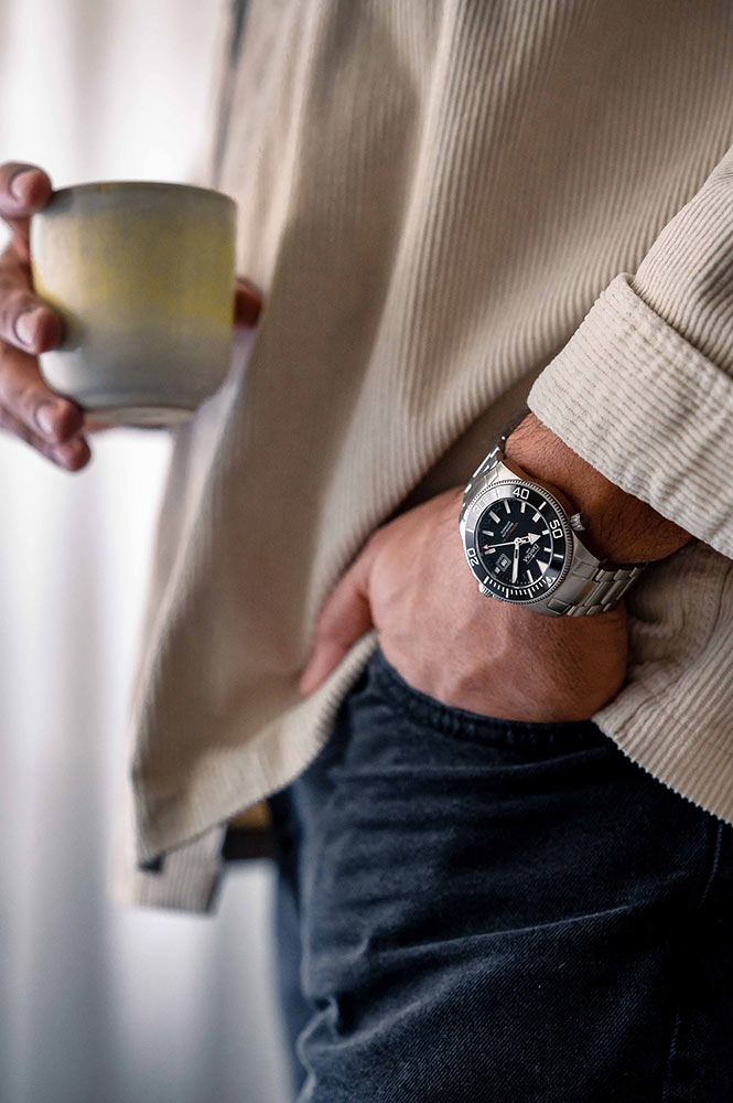 Černý ciferník v kombinaci s keramickou potápěčskou lunetou dodává hodinkám klasický sportovní charakter a zdůrazňuje jejich profesionální určení. Ručky a indexy jsou pokryty SuperLumiNovou BG W9, díky čemuž ve tmě září intenzivním modrým světlem a zajišťují vynikající čitelnost pod vodou. Odolné safírové sklíčko s antireflexní vrstvou chrání číselník a garantuje odolnost proti poškrábání i křišťálově čistou průhlednost.