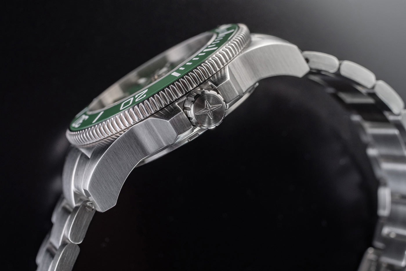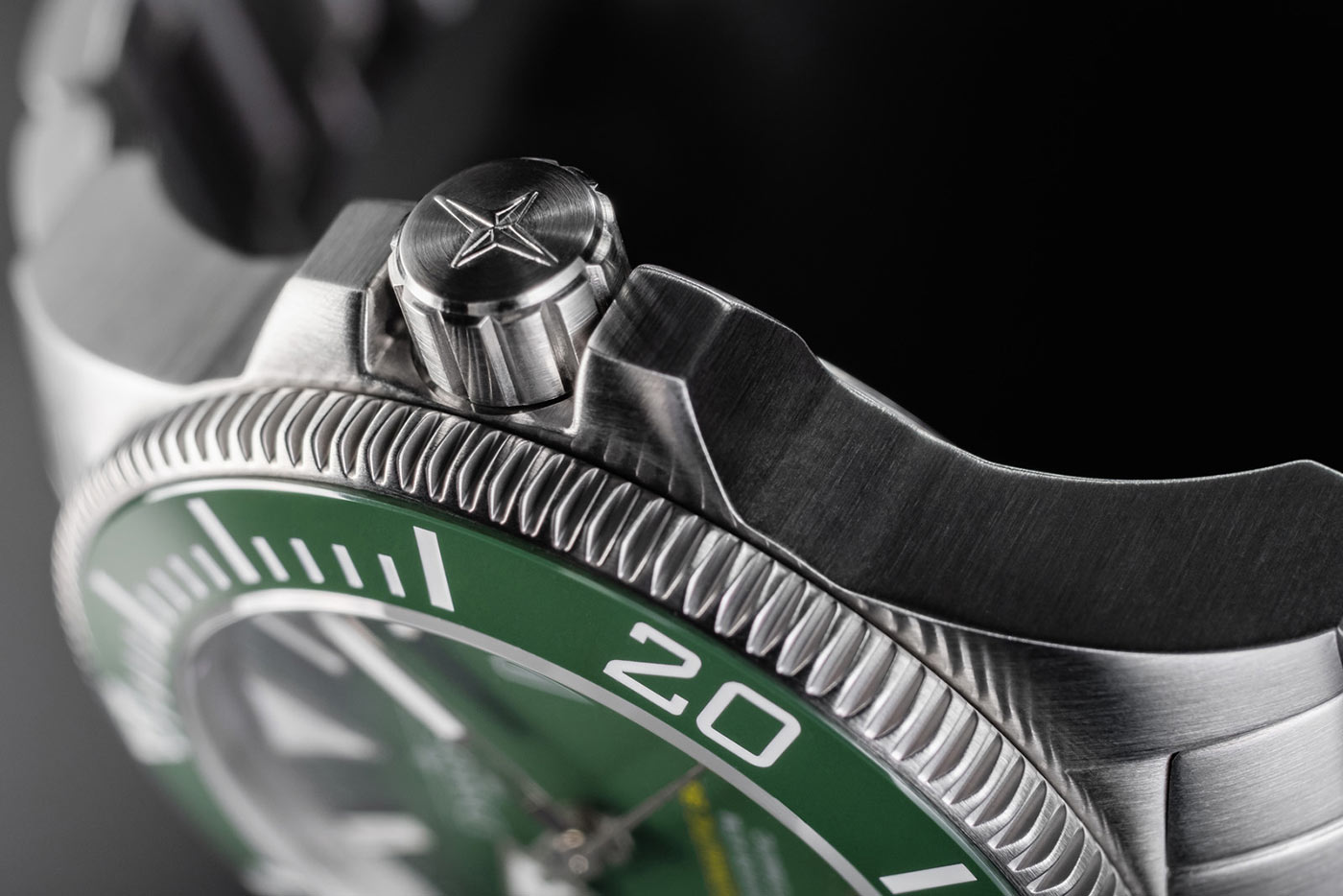 - Manuální, šroubovací heliový ventil. Díky němu můžete dosáhnout řízeného vyrovnávání tlaku uvnitř hodinek při výstupu na hladinu. Ventil na 10. hodině byl navíc technicky optimalizován a nyní je jasně rozpoznatelný podle symbolu helia na čele korunky.