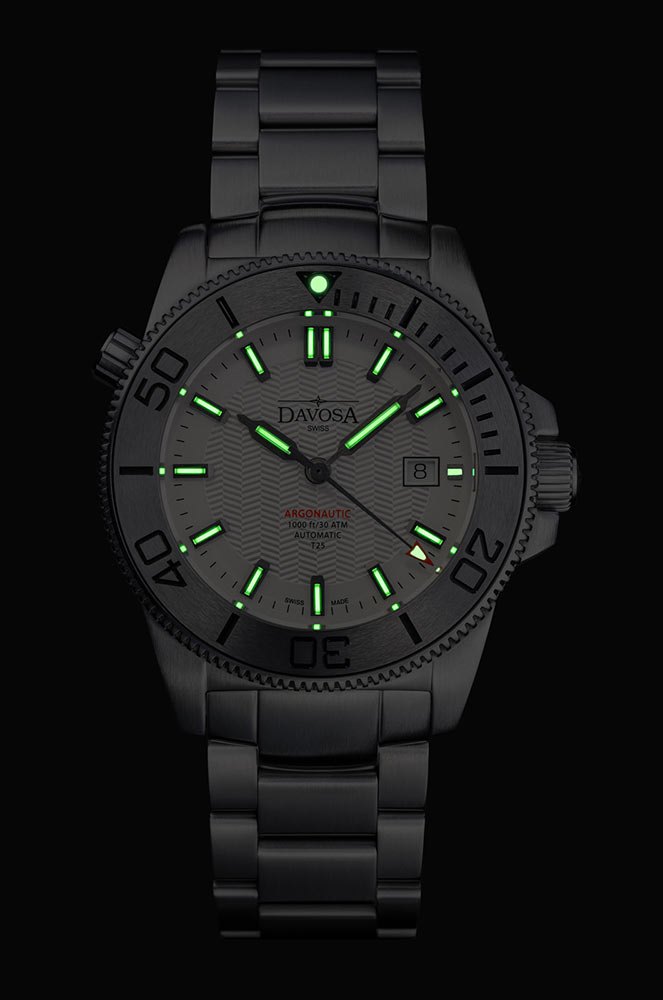 Davosa Argonautic Lumis BS 161.529.10W jsou inovativní potápěčské hodinky, které vynikají technologií stálého tritiového podsvícení a pokročilou konstrukcí připravenou na extrémní podmínky. Trubičky s plynným tritiem umístěné na indexech a ručkách zajišťují nepřetržitou, rovnoměrnou luminiscenci po mnoho let – bez nutnosti nabíjení vnějším světlem. Toto řešení garantuje čitelnost v absolutní tmě, což ocení jak profesionální potápěči, tak i ti, kteří hledají spolehlivost v jakýchkoli podmínkách.