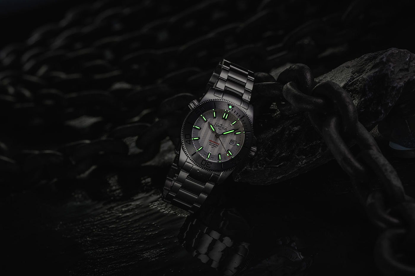 Ocelové pouzdro o průměru 43 mm ukrývá švýcarský automatický strojek DAV 3021 Sellita SW200-1 s 41hodinovou rezervou chodu. Jednosměrně otočná potápěčská luneta s vložkou Beyond Steel® se vyznačuje odolností proti poškrábání, chemikáliím a korozi, která převyšuje klasickou ocel či titan. Manuální, šroubovací heliový ventil, šroubovací dýnko a korunka spolu s vodotěsností do 300 metrů činí z tohoto modelu plně připravený nástroj pro profesionální potápění.