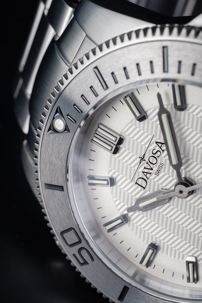 Pohodlí při nošení zvyšuje ocelový náramek s novou sponou WaveSlide, která umožňuje přesné nastavení délky bez použití nářadí – i při nošení hodinek na neoprenu. Silné safírové sklíčko s antireflexní vrstvou chrání ciferník a zlepšuje čitelnost na ostrém slunci. Davosa Argonautic Lumis BS 161.529.10W představuje dokonalé spojení pokročilé technologie, odolnosti a klasického pánského designu.