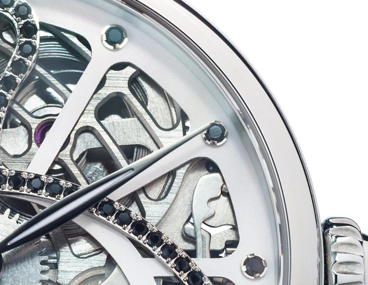 Dámské hodinky Davosa Skeleton. Speciální, tenké pouzdro určené pro ženy, s krásně zdobeným ručně vinutým mechanismem kostry uvnitř. S působivým průměrem 42 milimetrů vyzařuje Davosa Grande Diva sebevědomí. Je to také kvalita, která přitahuje stále větší počet žen, které hledají okouzlující design. Grande Diva jsou módní hodinky, ale klasické linie zajišťují, že nepůsobí drze. Když už mluvíme o klasických hodinkách, které se pyšní pouzdrem z nerezové oceli, zaujmou svou současnou osobitostí v kombinaci s nádechem vintage. Nadčasové kouzlo minulé éry je elegantně vyjádřeno zakřivenými 12 drahokamy a třpytivými drahokamy na lunetě pod ním.